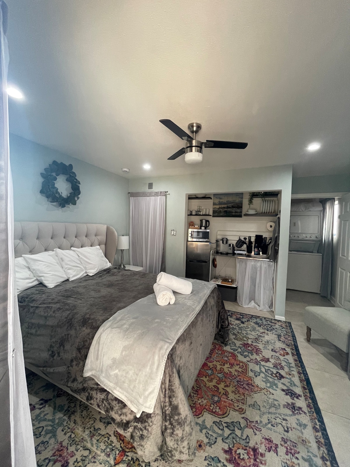 This newly updated studio was designed with spaciousness, attention to lighting and eye catching decor. When you step into this space you immediately feel the ability to take a deep breath. It has the essence of experiencing a new place, yet having all the comforts of home. The neighborhood is located in a very desirable part of Long Beach. It is a very peaceful spot to be while also being walking distance to the liveliness of 2nd Street (restaurants & Shops) and the Beach!