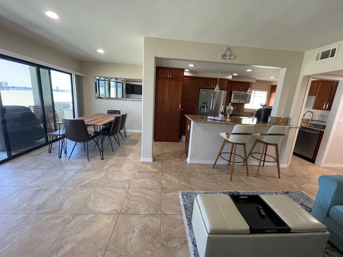Ocean Front.The whole first floor 3b/2b condo is your private residence. Walk off the patio onto the boardwalk and the sand! 2 blocks from the pier / Main Street with quaint shops & restaurants. Remodeled, new appliances, wood floors, in unit laundry, 1 car garage, bbq. Seal Beach is a family destination with surf, sun, shopping and entertainment with fun things to do every season of the year. We live in the upper unit with our kids so you may hear some early morning pitter patter. :)