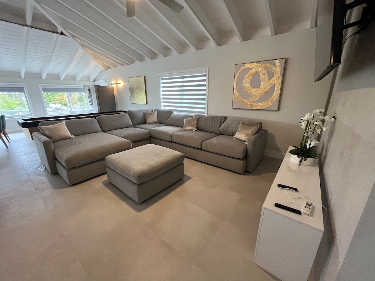 This Coco Plum home is the ultimate family getaway! With four bedrooms, two bathrooms, a modern living room with a 4K TV and surround sound, and an outdoor area that includes a fire pit, outdoor dining, and outdoor living space. The boat dock and breathtaking sunset views make this the perfect home for your fishing adventures. Beautiful Coco Plum beach is just a ten minute walk away. Make this home your next island adventure.