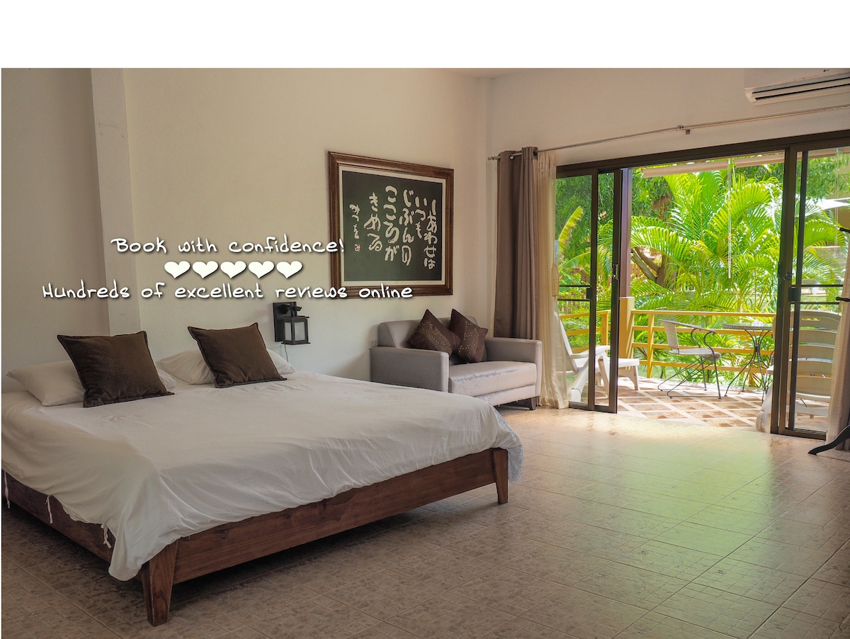 Newly renovated western style rooms with kitchenette. Short walking distance to the village including beach, shops, 7/11, dive centers, tour and transfer offices and restaurants. Parking is also available on site. Convenience self check in and check out.