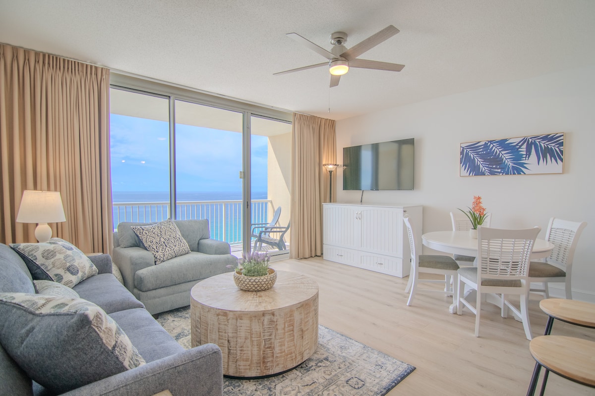 🏝 BEST IN PCB 🏝 It doesn’t get much better than waking up to a stunning ocean view from your main bedroom and stepping right onto a private balcony overlooking the breathtaking sunrises over the Gulf. Start your day with a warm cup of coffee as you take in the serene beauty of the emerald waters. In the evening, unwind with a glass of wine while watching dolphins gracefully swim by. Step directly onto the sugar-white sandy beach, unfold your chairs, and soak up the Florida sun. Perfect getaway