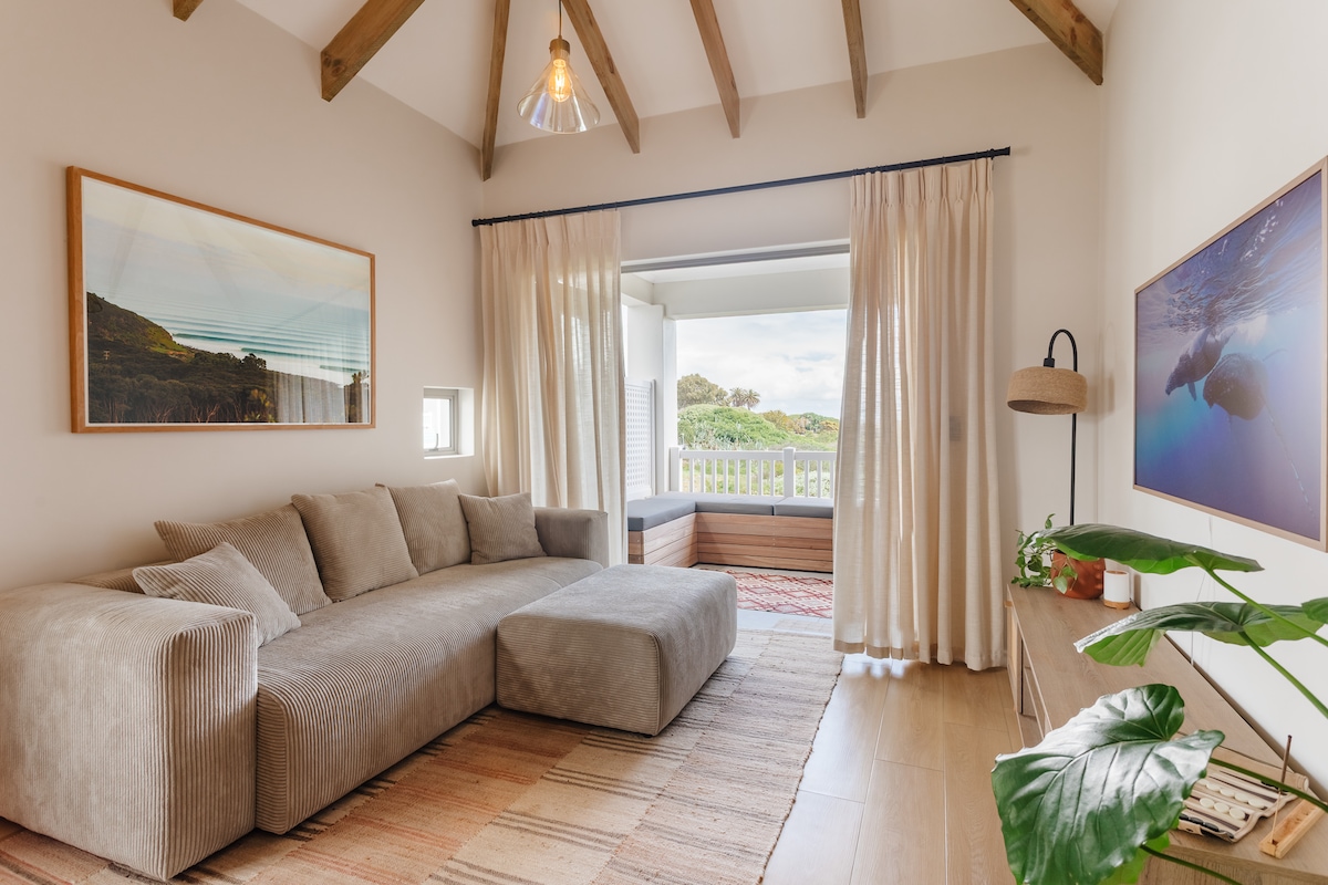 Located 3 minutes walk from the beach, this light, bright and airy 1 bedroom apartment is the perfect blend of ocean side bliss and upmarket luxury. Featuring a patio leading onto an expansive sundeck, sliding doors in the living area and large bay windows in the bedroom, the apartment is flooded with natural light and fresh air. Paired with the neutral aesthetic, open plan living area, tasteful finishes and convenient appliances, settling into your beach side holiday is easy when staying here.