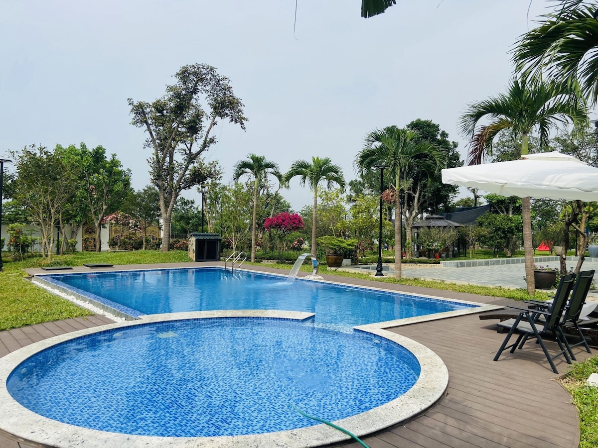 新房源带泳池和烧烤的绿色别墅,匹克球场