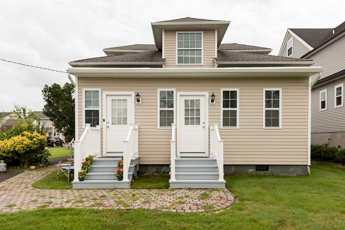 Newly renovated cottage apartment in a unique 120 yr old home. You must enter the correct total number of guests in your party to book. Master bedroom has King size bed. The 2nd bedroom has a Full size bed. The enclosed front sun porch has a Queen bed. Living room has a sofa that opens to a Queen size bed. 2 blocks from Monmouth Beach Pavilion, and Seven Presidents Beach. Relax on the deck with your own private grill. One off street parking space provided.