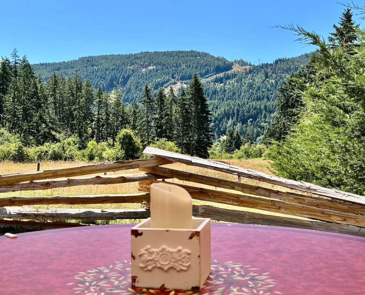 This luxurious oceanfront yurt is hidden in an ancient cedar grove providing privacy and an amazing backdrop to its unprecedented ocean front setting. Set atop an ocean front rock face with a fully covered patio. A fully equipped kitchen and spa like bathroom highlight the luxurious amenities included in this stay. An upscale romantic getaway like no other. Breakfast provided, our guests receive coffee, teas, a bottle of our house cider and our fresh pastries during their stay.