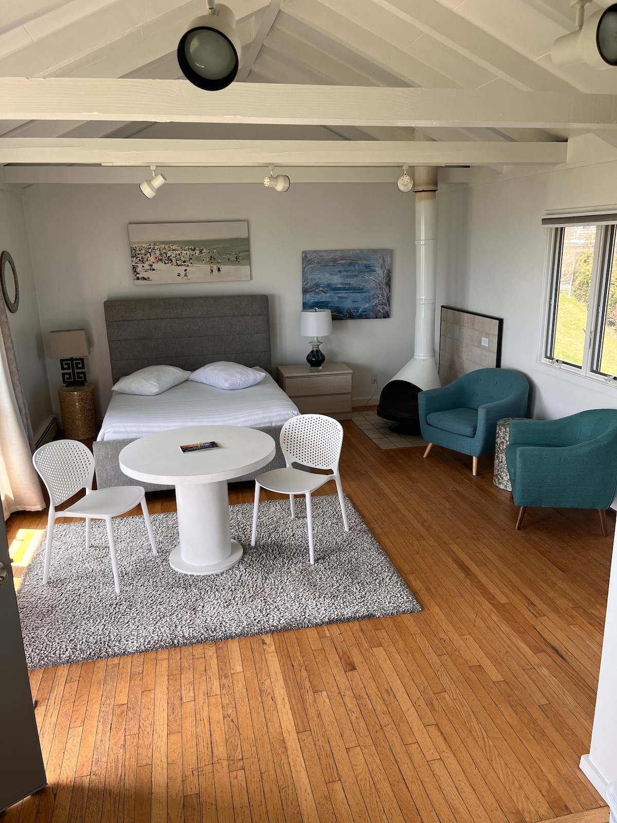 Escape to a recently renovated boho-chic surf cabin on a private half-acre of land, featured on Dwell. Located in the charming, historic town of Springs, our cabin is just a five-minute drive from the nearest beach, and close to several great restaurants. Bright and airy with new appliances, and a fully equipped kitchen. Perfect for working from home, the space has two desks, one in a one stylish, stand-alone office. Rental registry: 24-449