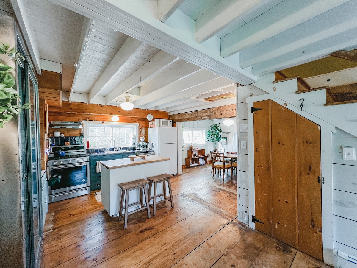 A charming original turn of the century cottage that was recently renovated. One main room plus a full bathroom and Ikea kitchen. It includes a back porch that gets a perfect amount of late afternoon sun. The cottage has electric baseboard heat for cool nights. We are located in Indian Cove beach Association with a two block walk to the beach. You are welcome to enjoy our kayaks, bikes to tour the area and a fire pit.