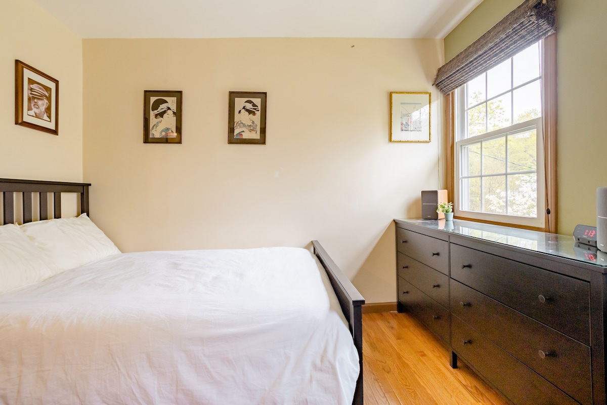As a postgrad., lecturer, MD, or other professional, you’ll appreciate the Africa Room with its excellent Wi-Fi, and peace and quiet. It has 2 twin beds, a table and 2 chairs, sink, fridge, microwave, coffee maker, and air fryer. The backyard deck has excellent Wi-Fi, with woods and wildlife mere feet away. A 15-minute car ride from Yale Campus and downtown, my house is in a quiet and very safe neighborhood, environmentally conscious and LGBTQA+-friendly, with a welcoming and homey atmosphere.