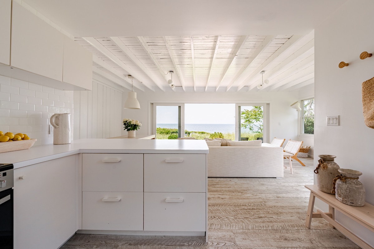 Newly renovated and featured as a top Airbnb by New York Magazine, The Beach Cottage has been designed and decorated in a modern organic style, with a palette of whites and neutrals to create a serene and peaceful escape. Relax in the airy, light and open living room, which features a wall of glass for indoor/outdoor living with expansive, uninterrupted water views. Stay on the property for swimming, beach walks, sunsets and BBQs - or venture out to enjoy all the North Fork has to offer.