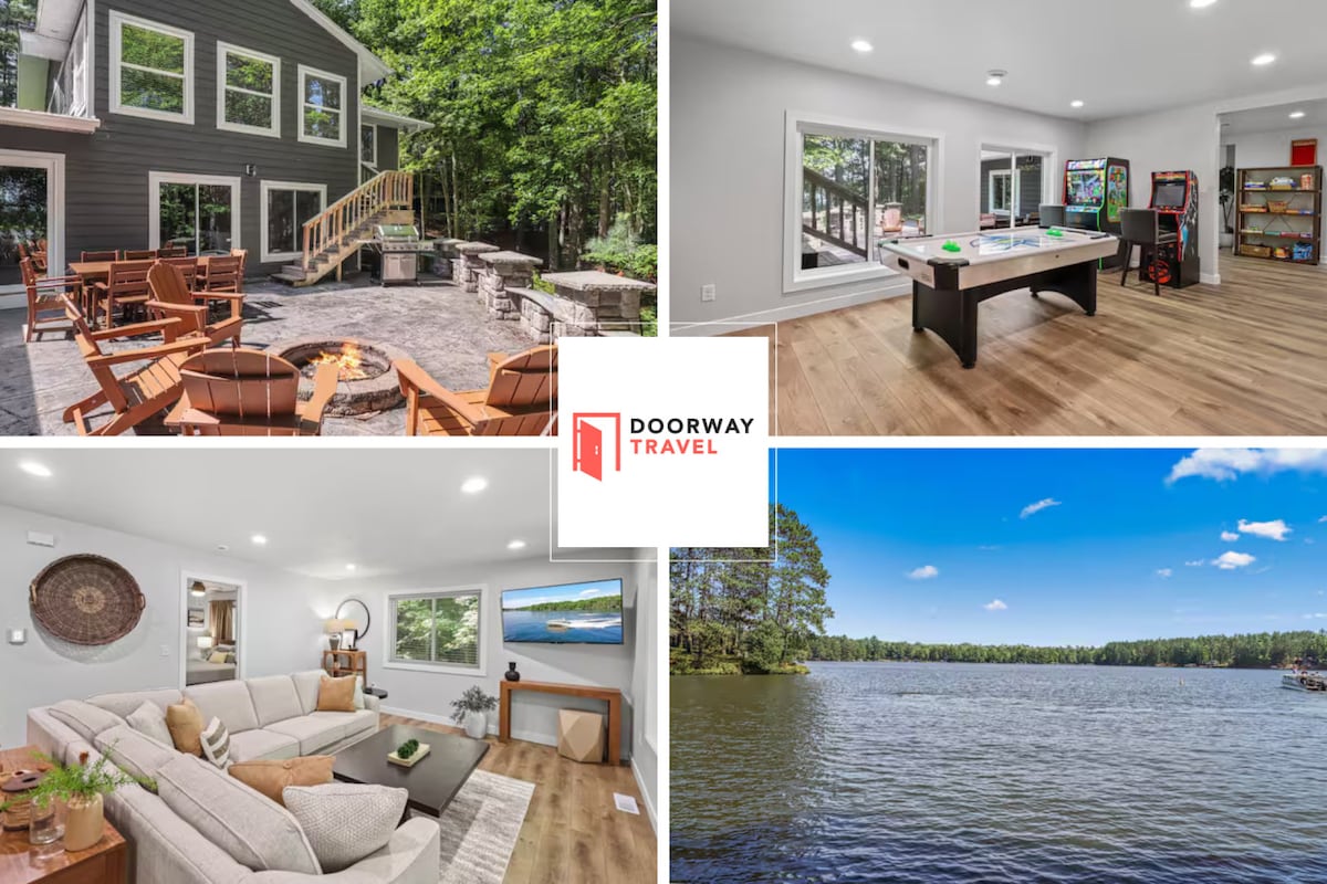 新房源滨水!可容纳21人,私人码头,水上玩具,火坑