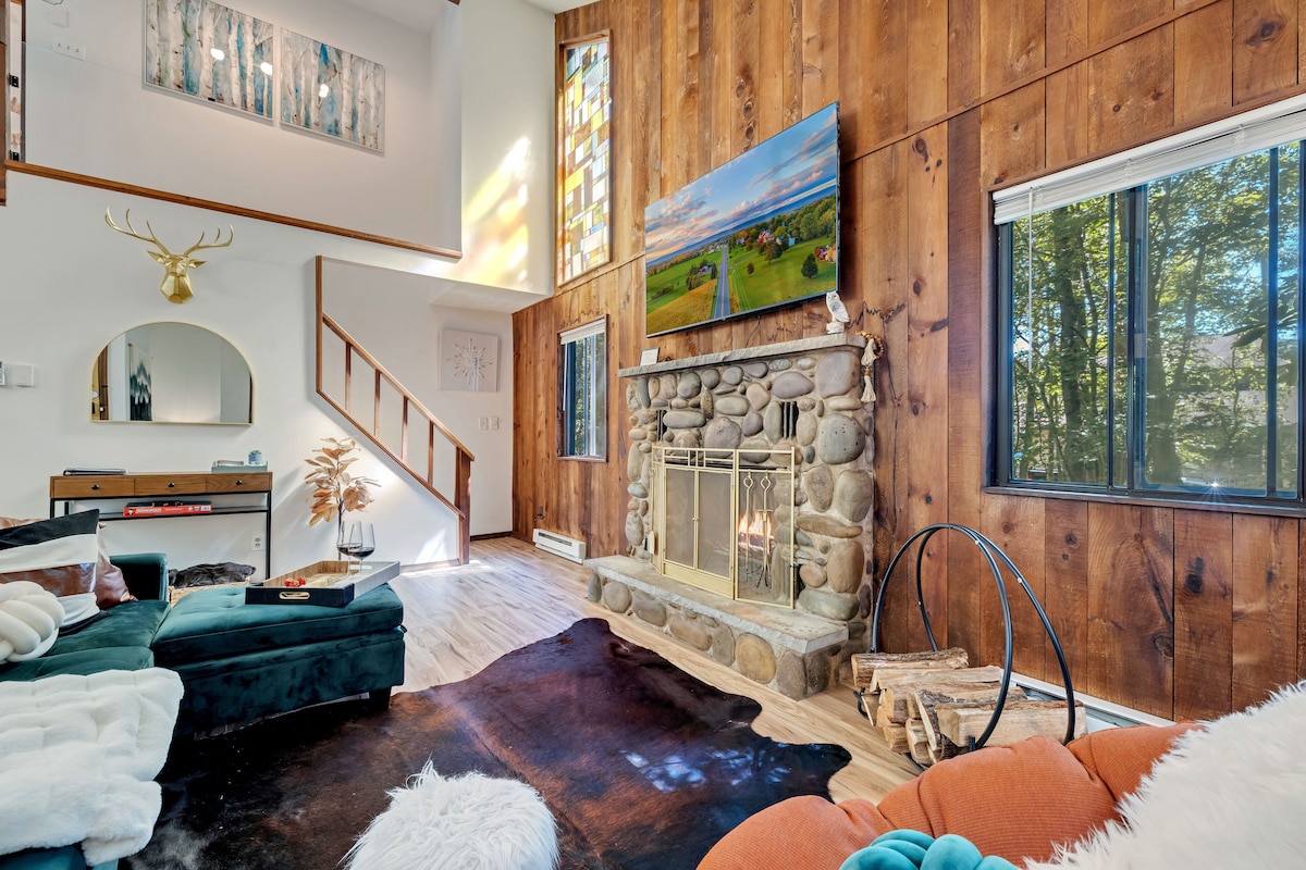 适合家庭入住的小木屋I火坑+热水浴缸I波科诺斯
