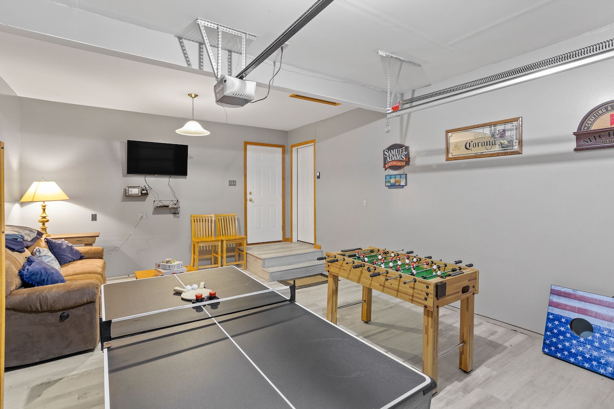 Welcome to our newly renovated modern 6 bedroom retreat featuring a private heated indoor pool, perfect for families and group getaways year round. This spacious home offers high ceilings, an open floor plan, and stylish decor throughout. Enjoy the game room with ping pong, foosball, darts, and giant Connect 4, gather around the large dining area, cook in the beautiful kitchen or relax outdoors surrounded by nature. Designed for comfort, fun, and memorable stays with plenty of space for everyone