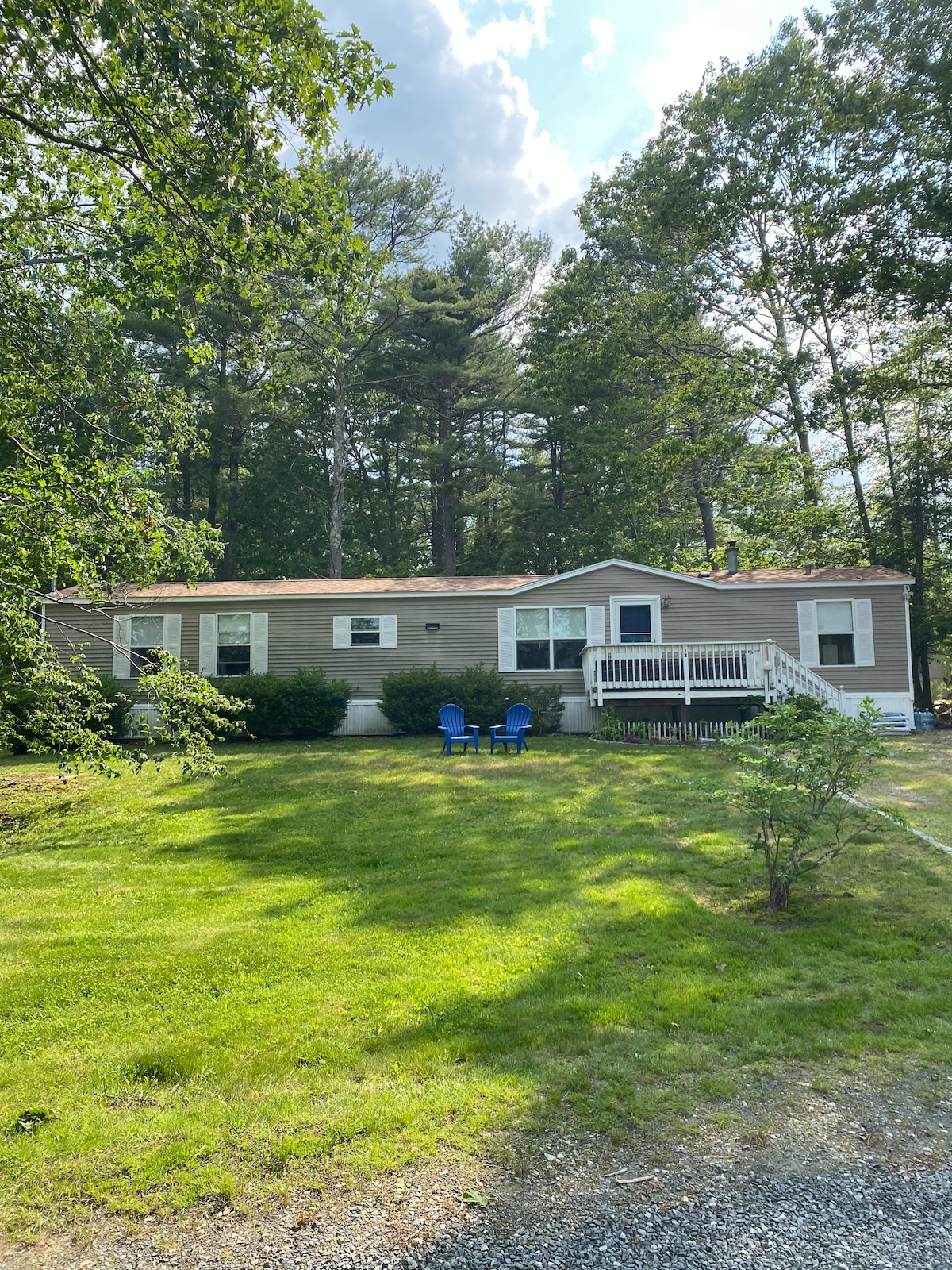 Bring your family or have a romantic getaway in this beautiful 2 bedroom, 2 private baths located in this quiet country setting. Pet friendly. Big fenced in wooded back yard for your pets to roam. Big back yard deck w/ seating, grill. Minutes away to boat launching area to rent party boats, kayaks, paddle boats, Swimming, winter sports on Milton 3 ponds. Seasonal blueberry, peach, apple picking in town. Park your boat or snowmobile trailors. Skydive New England right in town. Fall leaves.