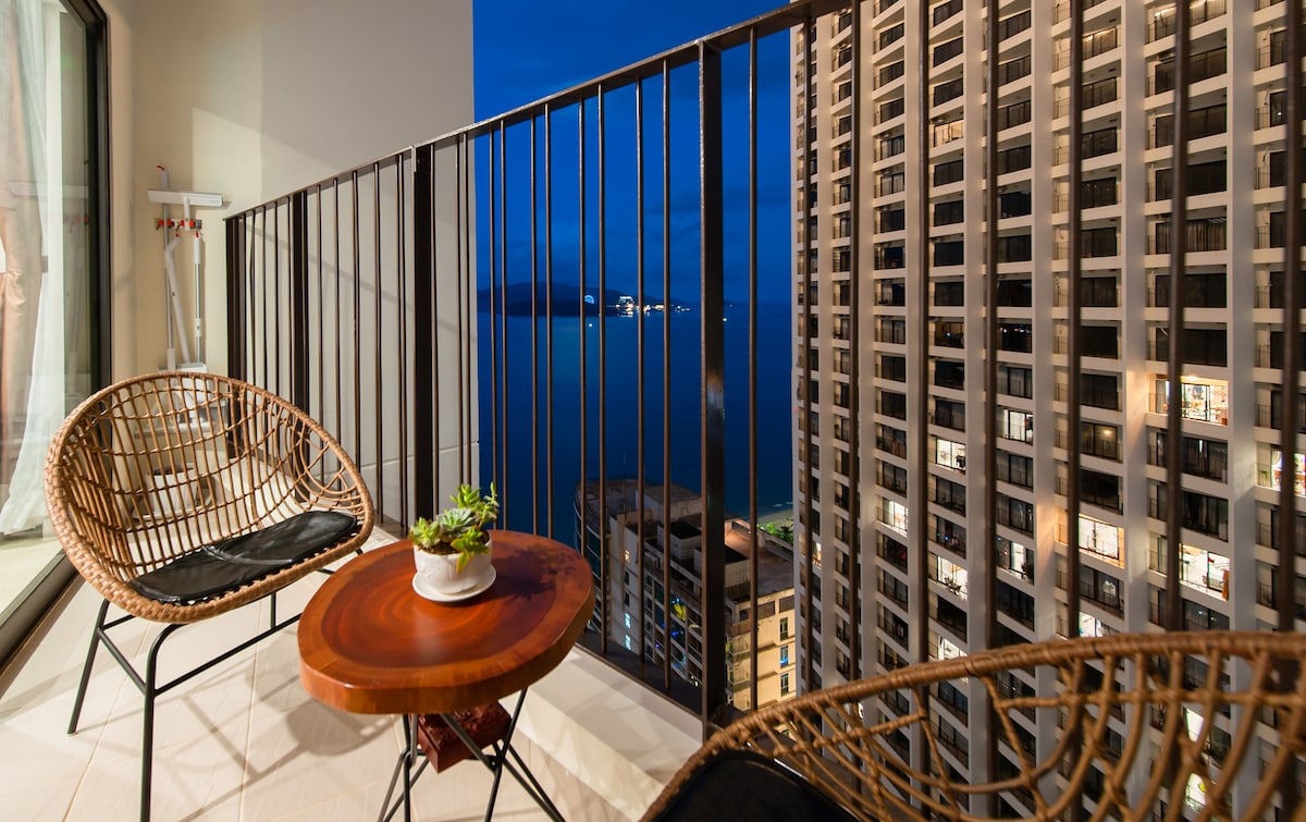 An sea-view and City-view apartment 52 sqm which is located in center of Nha Trang City and is at the airport bus stop. This apartment is inside a modern building with shopping mall and is just 2 minutes walk to beach, cinemas, supermarket, pubs, night market, 5-star hotels such as I ntercontinental, Sheraton, Sunrise,.. We have full funiture and convenient. Really wonderful and enjoy your vacation with really good air.
