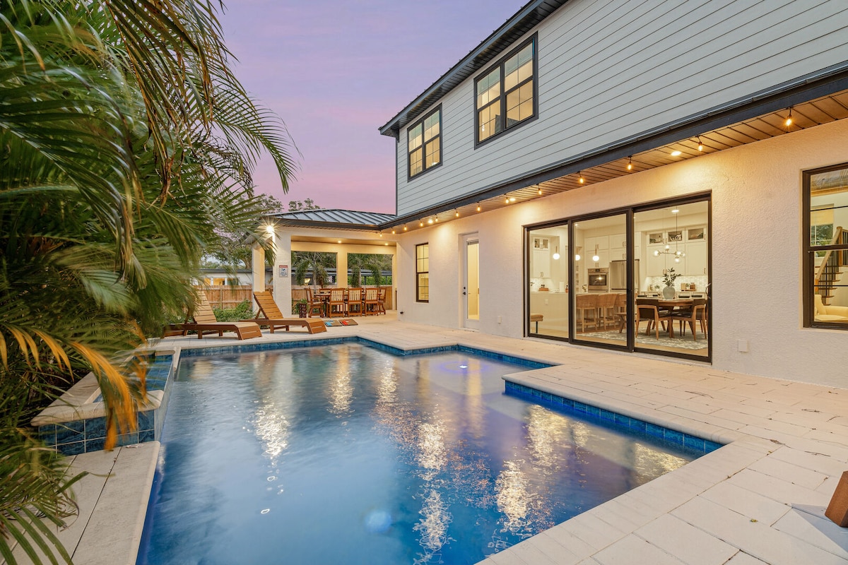 家庭乐趣•泳池•可睡14人•游戏•萨拉索塔国际机场、奥米德海滩和海滩