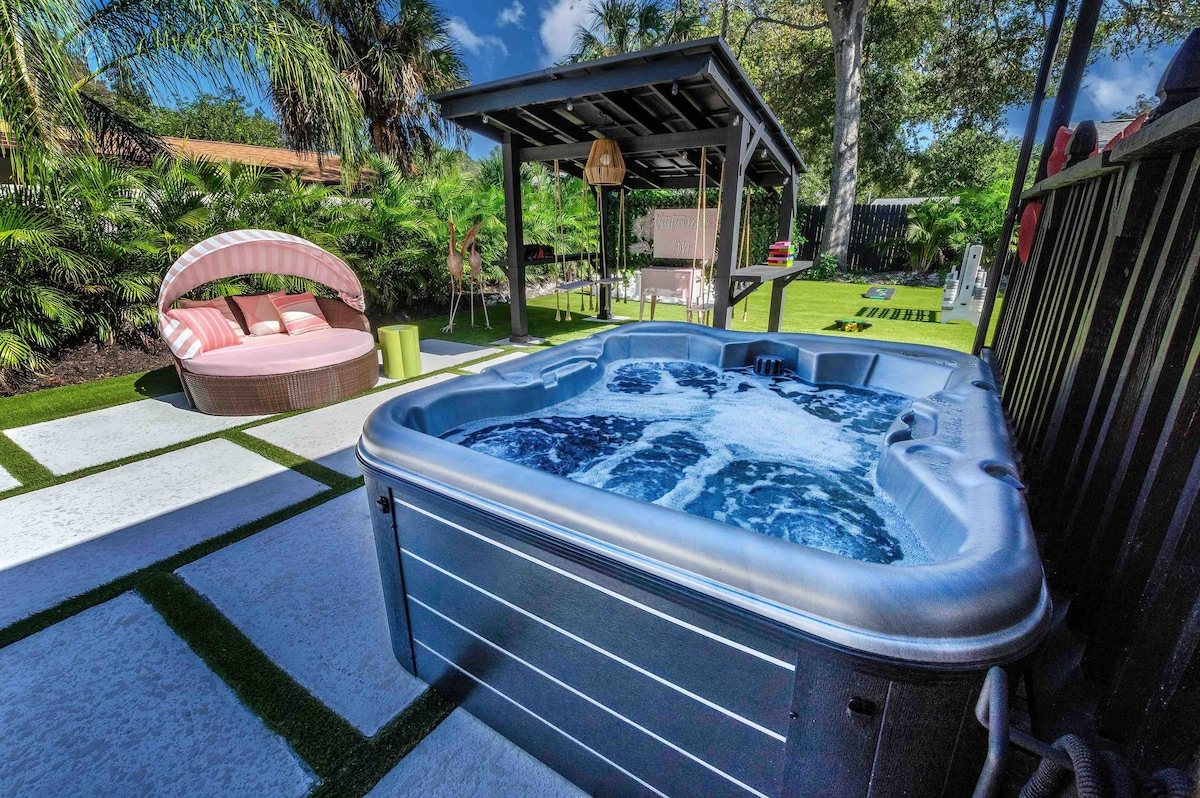 Welcome to Tampa Luxury Casita, a stylish and centrally located retreat featuring a relaxing jacuzzi and a private golf putting green. Located within walking distance to Busch Gardens, this beautifully designed space offers modern amenities, cozy comforts, and easy access to top attractions. Whether you're here for a weekend getaway or an extended stay, our casita promises a luxurious and unforgettable experience. Book now and enjoy the best of Tampa Bay!