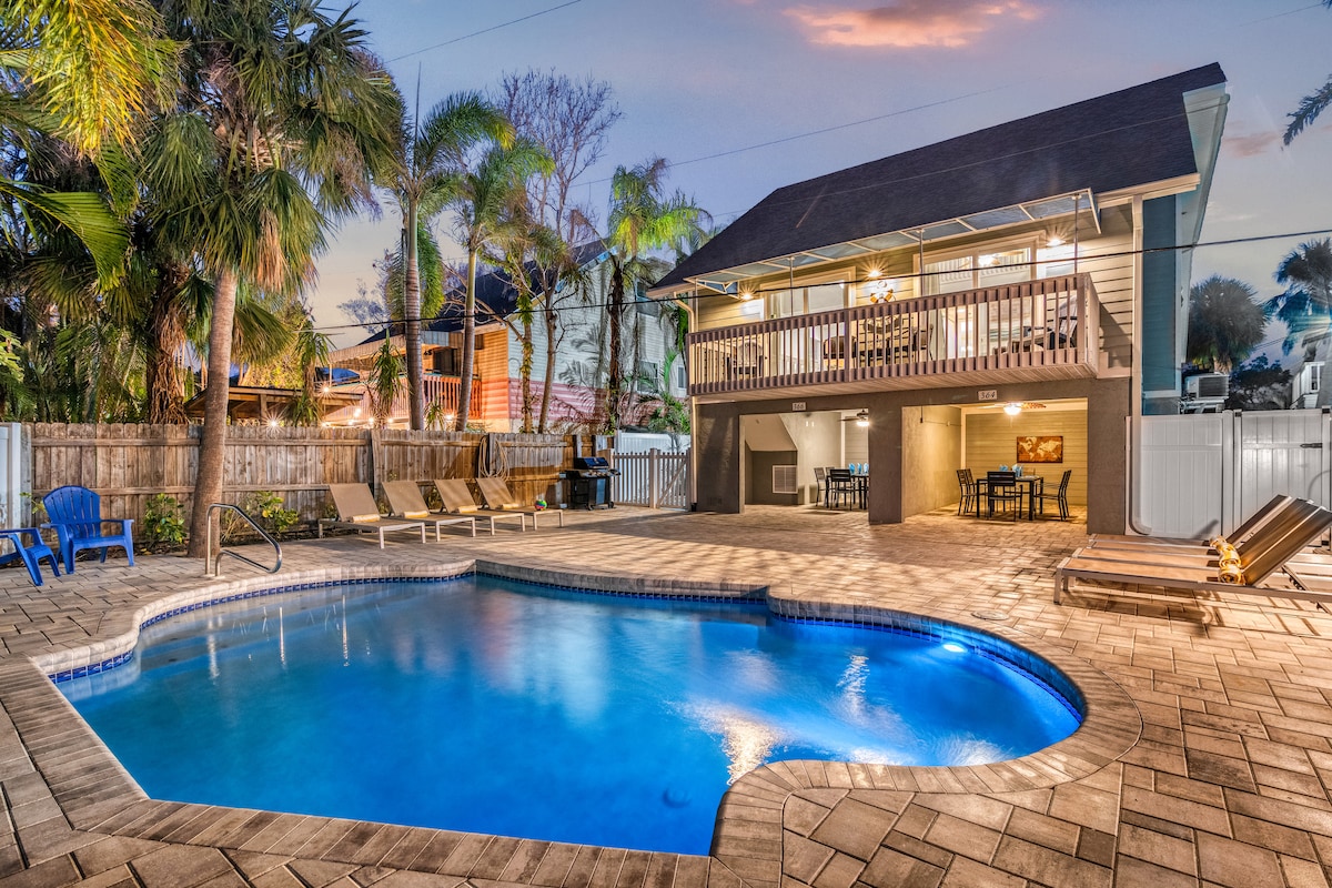 This stunning 3 story 4BR/3.5BA townhome (built in 2017) blends luxury, comfort, & the perfect beach town vibe. 2 blocks from the world famous white sands of Clearwater Beach and directly on the intracoastal waterway, this home offers everything you need for an unforgettable Florida getaway. Private pool and hot tub access! Ideal for families, couples, or groups of up to 10 guests looking for a premium vacation experience. Beaches, boating, biking, shops, food, drink & water fun all steps away!