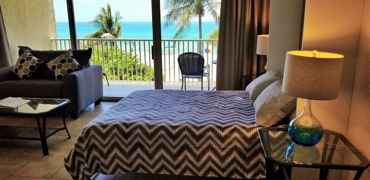 This sublime oceanfront studio is directly on the pristine white sands and serene blue waters of the Gulf of Mexico in Longboat Key, Florida! On the second floor, overlooking the heated pool and ocean, this dreamy studio condo is optimal for sunset viewing from a private lanai. Take a 30-second walk to the pool and secluded beach. Enjoy a relaxing vacation at our peaceful condo at The Beach at Longboat Key Resort! To see all four of our listings, click on my Host photo and scroll down...!