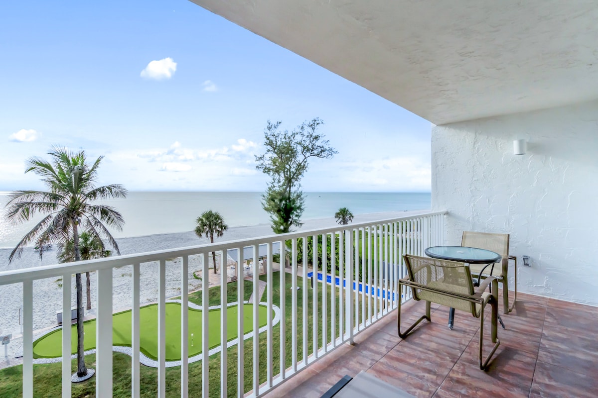 Beachfront Bliss — No Streets to Cross, Just Steps from the Sand! Enjoy breathtaking Gulf and sunset views from your private balcony in this spacious, newly updated condo. Featuring a brand-new bathroom and new flooring throughout, this 4th-floor unit (with elevator access) is the perfect retreat for your Longboat Key escape. The condo comfortably sleeps up to 6 guests. Sip your morning coffee or catch dolphin sightings and stunning sunsets from the balcony with 180° view of the Gulf. Elevator.