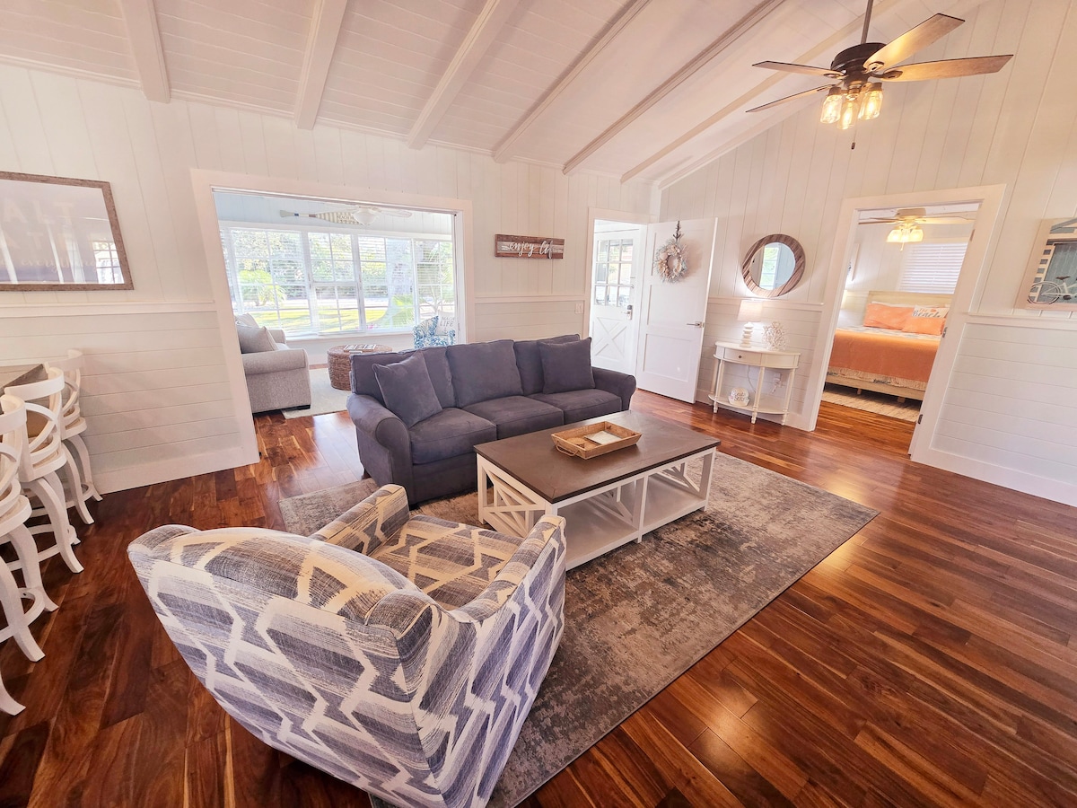 Renovated, romantic 1937 beach front cottage. Last of its kind in the quiet family setting of Indian Shores Florida, halfway between Clearwater Beach and Treasure Island/John's Pass. Truly an "Old Florida" experience with original pine floors, Florida room and covered porches, as well as updated kitchen and bathroom. This house, uniquely built near ground level, allows it to be waterfront on the beach while shaded by huge pine trees. You won't find a more tranquil setting on the beach.