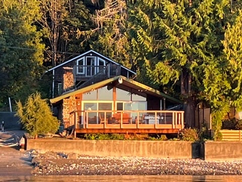 Perched right on the shoreline, this Hood Canal retreat is so close to the water that at high tide, it feels like you're floating. With 180-degree unobstructed views, warm swimmable waters, and direct beach access, this is the ultimate Pacific Northwest escape. Wake up to the calls of seabirds, sip your coffee on the deck as seals and otters glide by, then spend your day kayaking or harvesting fresh shellfish. Relax with an evening cocktail in hand—this is what waterfront dreams are made of.