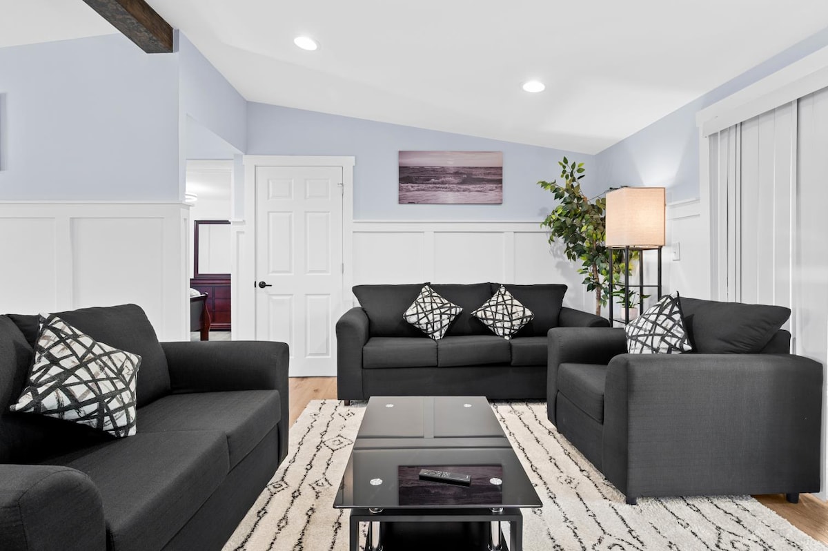 Family fun for all ages, located near the beach and intercoastal waterway. Safe central location with colorful artsy fun! New 2026 pinball. Lavish modern décor with comfortable King & Queen bedrooms. A short drive to family favorite Cherry Grove Beach. High tech sound & lighting systems, Dolby Atmos, LG OLED TVs, streaming & PS5 game system, arcade, foosball and new pinball machines. Tesla car charger. Full featured gourmet kitchen, Weber charcoal grill, and fire pit. Ready for play!