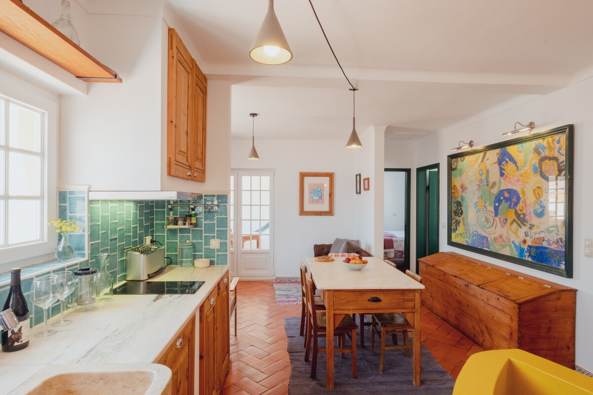 This house is located in the center of Milfontes, you can easily walk around Milfontes and enjoy what it has to offer, including the beach, river and coastline. The house is in the first floor, has two rooms, one bathroom, a living room with a kitchenette and a balcony. The entrance is private, and there is two locked doors separating it from the ground floor house. This is part of Branco de Cal, a family project coordinated by brother and sister Tomás and Mariana.