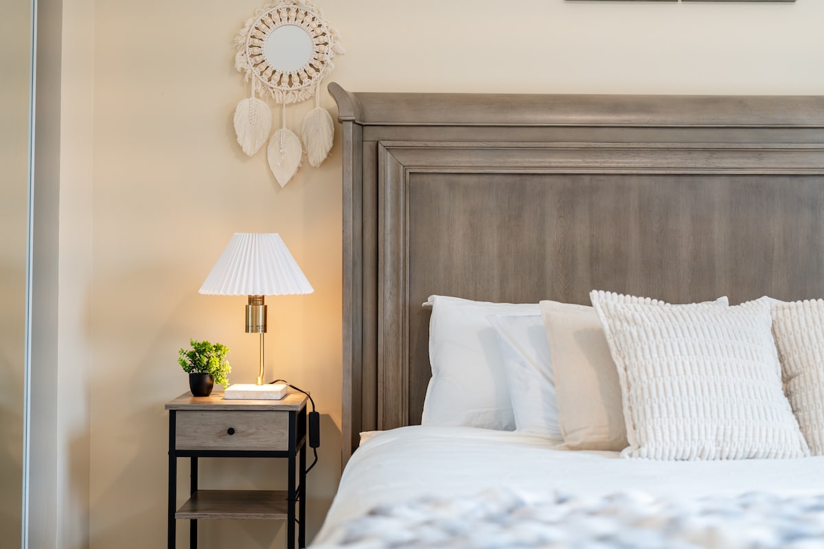 🛏️ Sleep Like a Dream – Plush queen-sized bed with hotel-quality linens. Rest easy after exploring Montreal. 📺 Netflix & Chill Ready – Smart TV with streaming apps. 🚿 Modern & Spotless Bathroom – 🍳 Fully Equipped Kitchen – Save $$ on dining out! Cook like a pro with all the essentials. 🚗 RARE FIND: FREE Parking! –Park for FREE. 🚀 Work & Play – High-speed WiFi + dedicated workspace for digital nomads. ✅ 14 mins to Downtown Montreal – Perfect for concerts, festivals, nightlife!