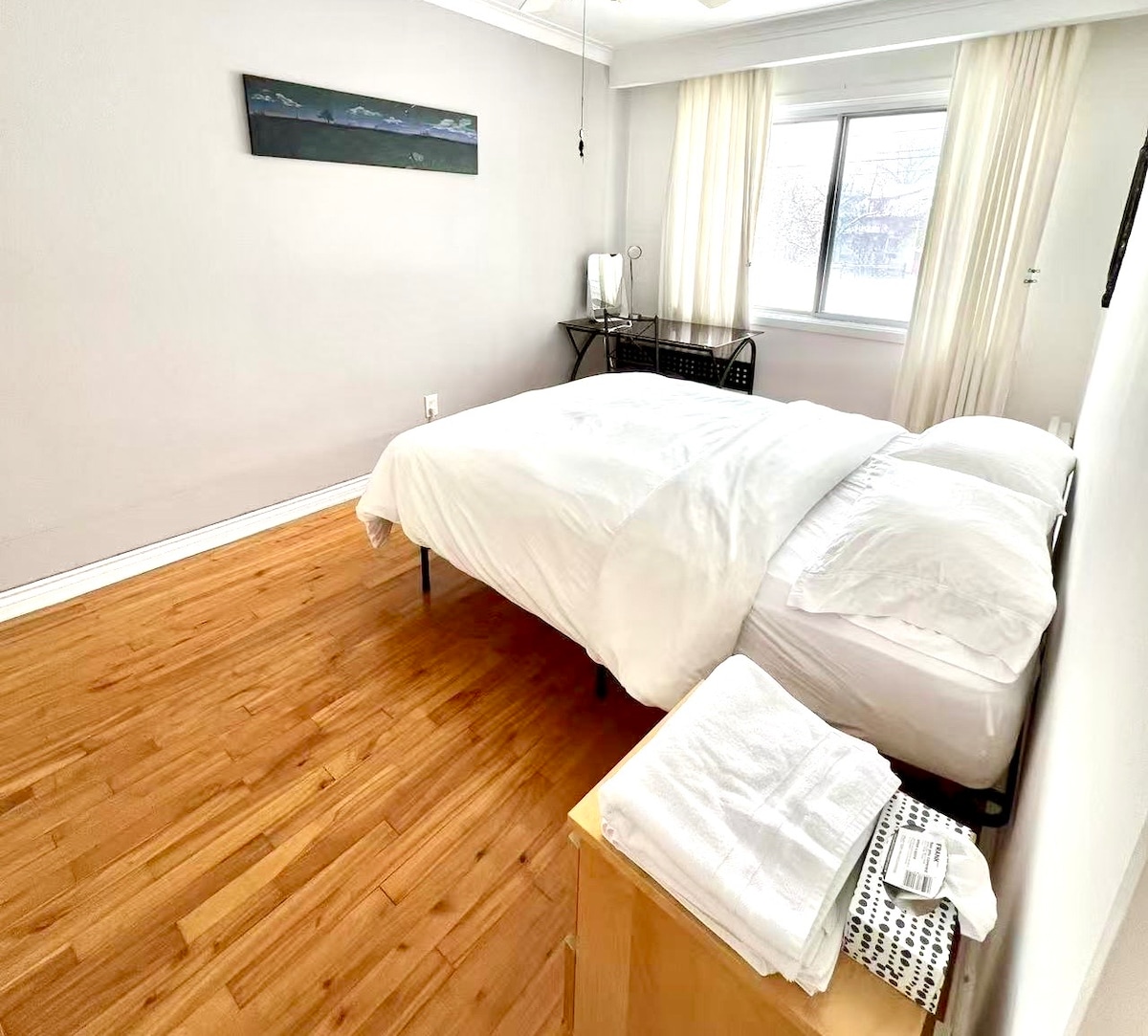 Quiet neighborhood close to bus stops, shopping centers, gym and restaurants. Short drive to downtown Montreal. Reserved two car parking on the right side. Kitchen is fully equipped including a dishwasher, utensils, stove, fridge, microwave. Our guests can be assured the bedding will be washed and changed with each and every new guest, and for those staying for a week or more, bedding is changed every week. You get the enitre floor with private entrance and terrace to yourself.