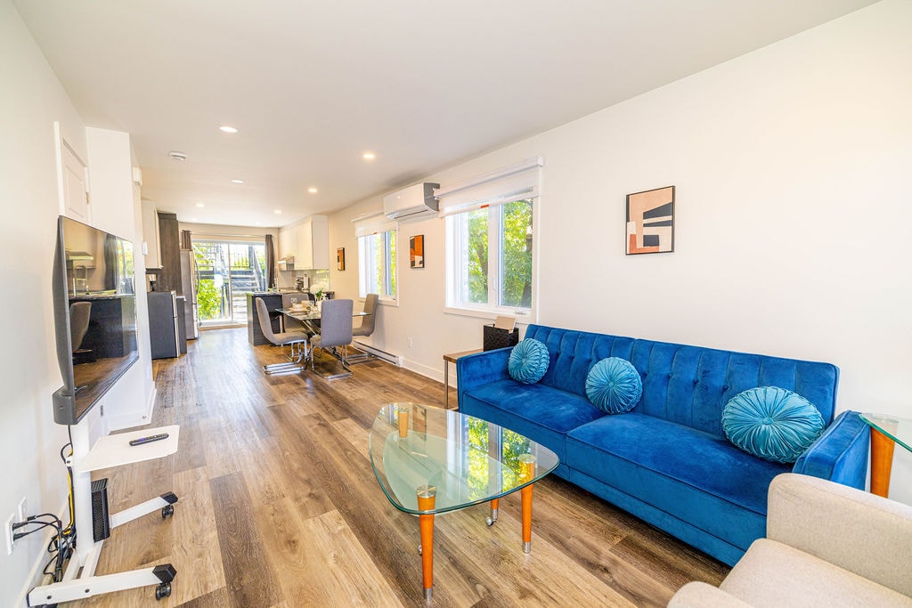 🛏️ Sleep Like a Dream – Plush queen-sized bed with hotel-quality linens. Rest easy after exploring Montreal. 📺 Netflix & Chill Ready – Smart TV with streaming apps. 🚿 Modern & Spotless Bathroom – 🍳 Fully Equipped Kitchen – Save $$ on dining out! Cook like a pro with all the essentials. 🚗 RARE FIND: FREE Parking! –Park for FREE. 🚀 Work & Play – High-speed WiFi + dedicated workspace for digital nomads. ✅ 14 mins to Downtown Montreal – Perfect for concerts, festivals, nightlife!