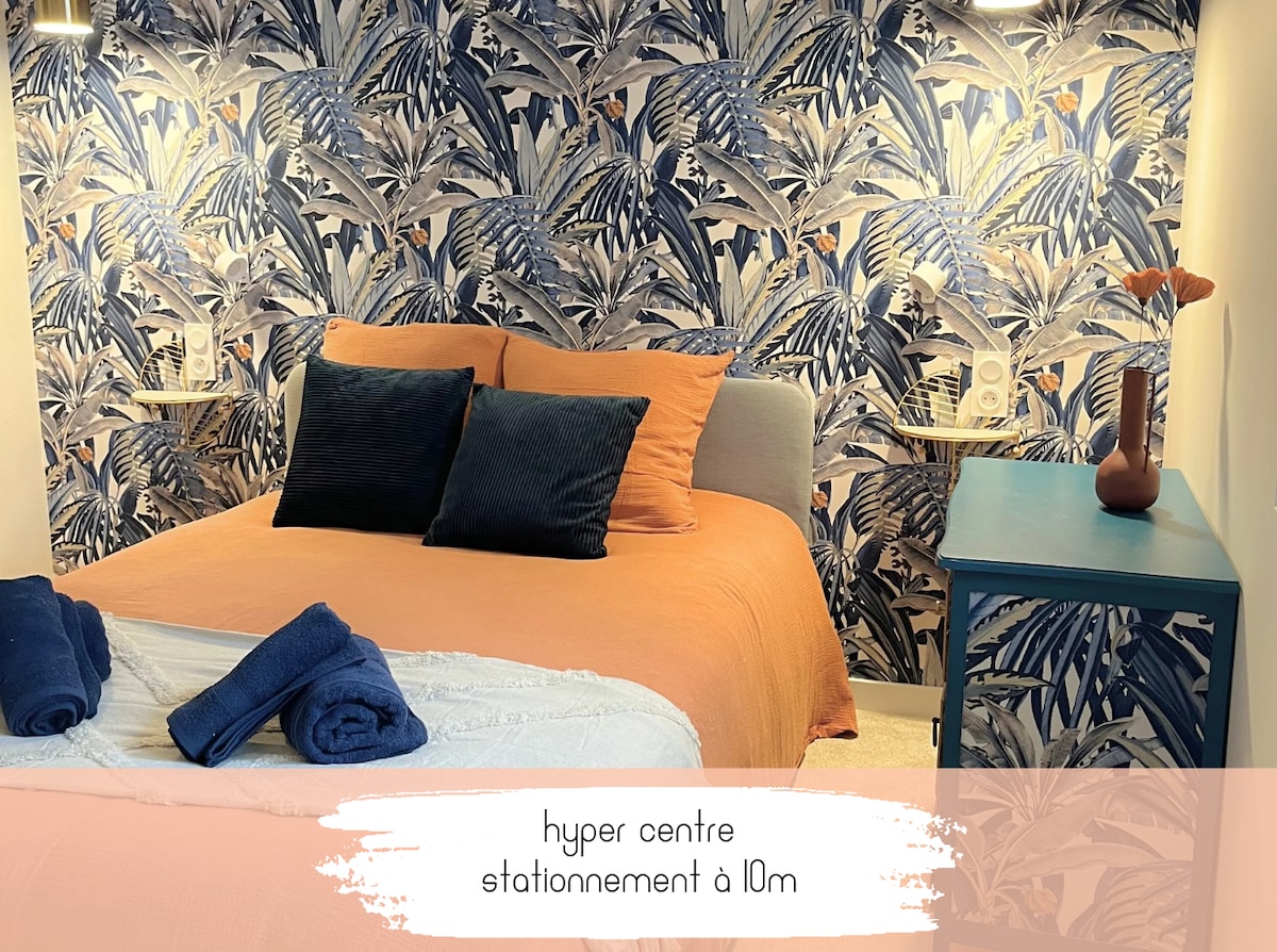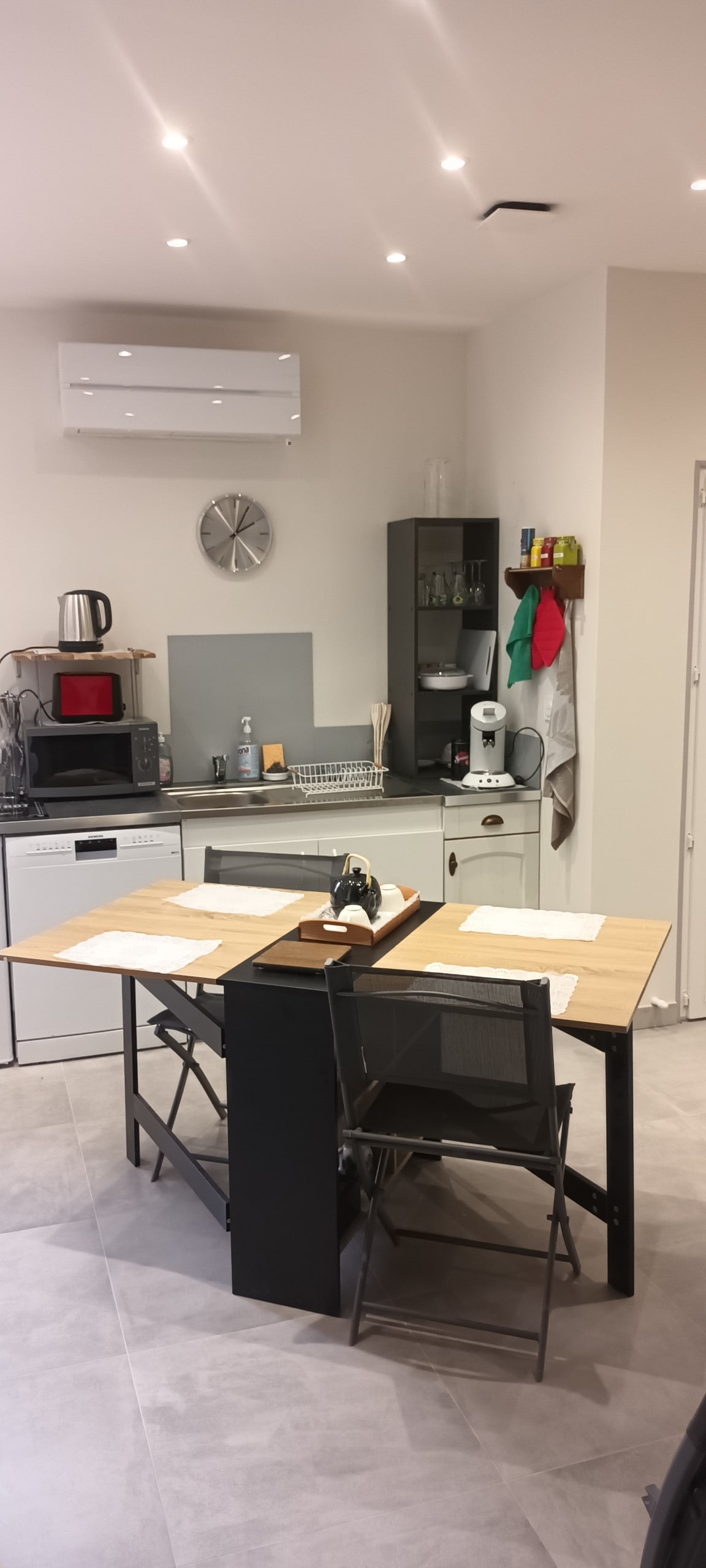 56m² neuf/rez-de-chaussée villa/terrasse privative + coin repas aménagé/2 parasols/jardin en herbe/parking gratuit/entièrement climatisé/lave-linge/sèche-linge/lit 180x200/wifi rapide/TV HD Netflix/salon italien de standing/bureau de travail complet/autoconsommation électrique/installation solaire 6 kWc sur toit/3 étoiles "Gites de France" suréquipé/quartier résidentiel très calme/4mn centre ville/véranda lumineuse/animal de compagnie bienvenu (sauf éléphant)