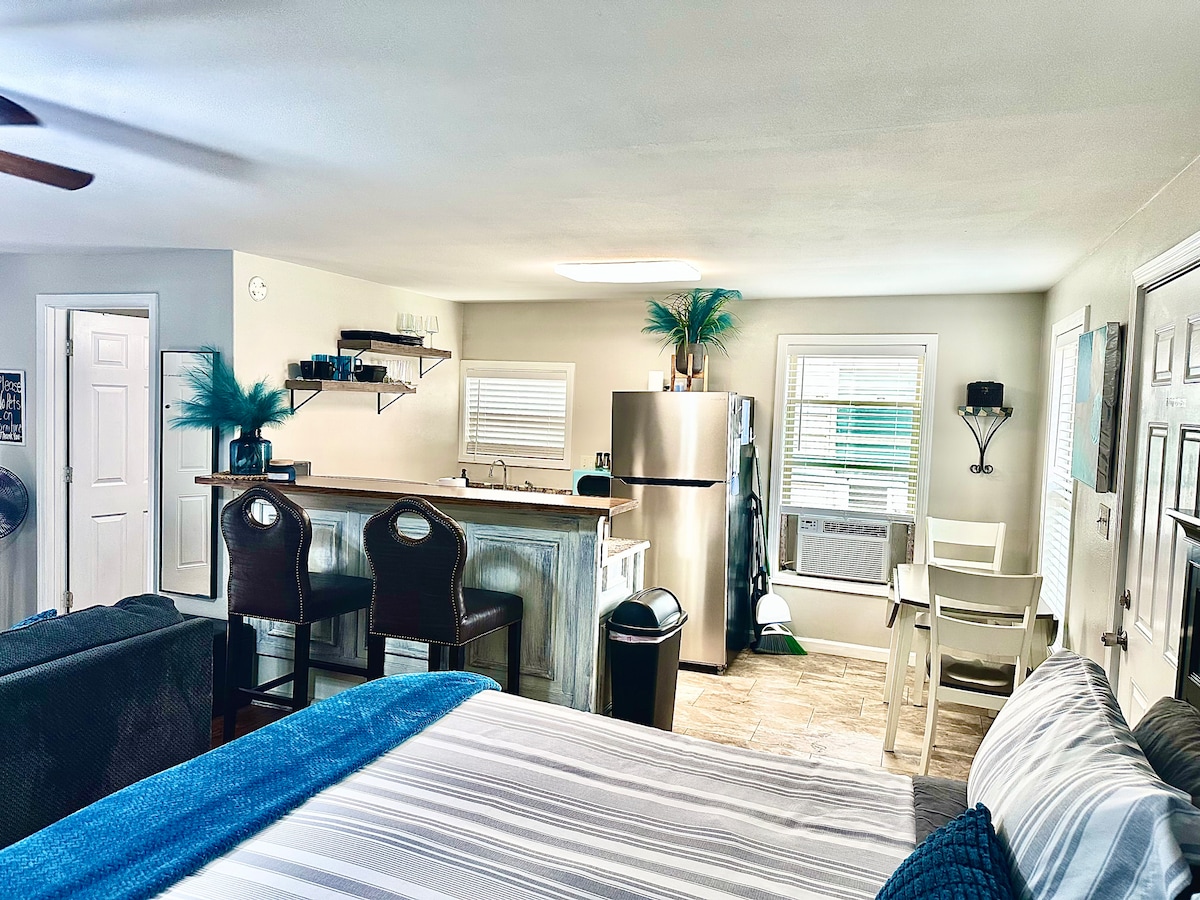 We have everything you need all at a great rate. Room comes with a fully equipped kitchen-refrigerator, stove, microwave and toaster. Large smart TV and Wi-Fi access. Disney + (with Hulu in the app), Fandango, Paramount+, HBO, Peacock, ESPN and Vudu accounts set up on tv. Comfort is key with super soft king sized pillow top bed and highest quality sheets & duvet. Couch folds out into queen sized bed. Enclosed gazebo w/ seating between units 2 & 3 for all guests. Individual grills & fire-pit