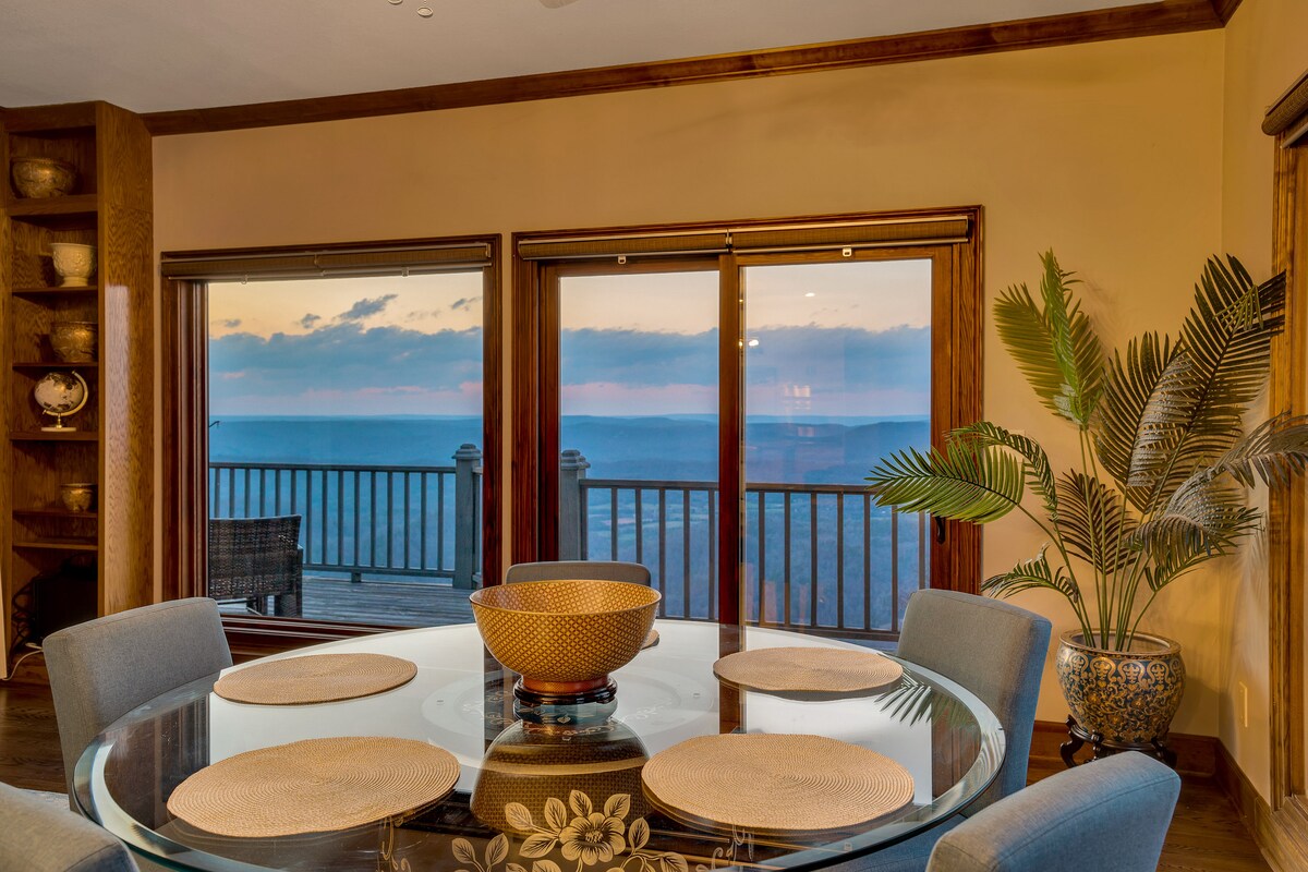This custom built 2 story, 2 bedroom, 2.5 bath home right on the bluff of Lookout Mountain offers majestic views, peaceful and calming scenery, and the chance to feel like you are right at home. Our goal is to provide what we would want in a vacation home for your family and more. Relax and unwind on the balcony with a cup of coffee, or on the patio with a glass of wine with dinner, or right by the fire pit at night as you watch the sunset. Come and enjoy a slice of heaven.