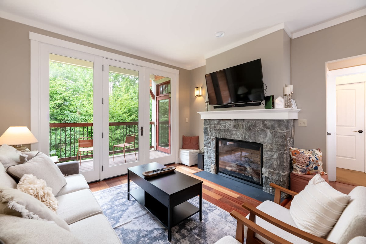 Our condo is a privately owned 1st floor rustic themed home that sits along the East branch of the Pemigewasset River. Direct river access from our back porch. One minute drive to Loon Mountain and close to many area attractions. Leave the city noises behind when you walk through our private front entrance - you’ll feel like you’ve transported to a remote cabin in the woods! Listen to the sounds of the rushing river and enjoy breathtaking nature views from every room (mountain view in winter).