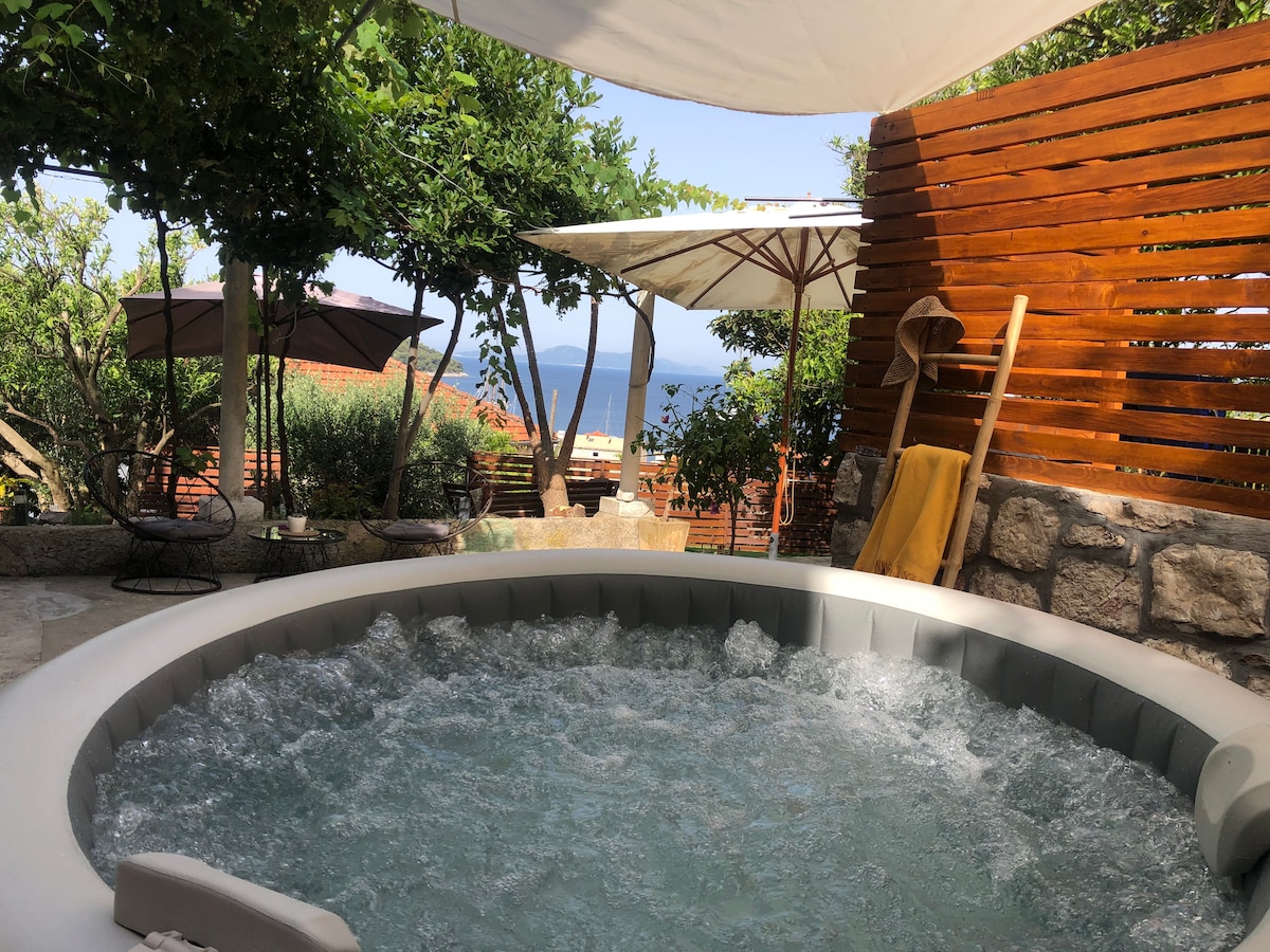 Lying in a king size bed with an incredible view over the bay, sounds like a nice way to start your day? Spacious apartment Dino on the first floor of 500 years old stone captain's house offers that and much more. You can enjoy sunsets in the jacuzzi tub (heated in the sun) while eating organic treats from our garden.