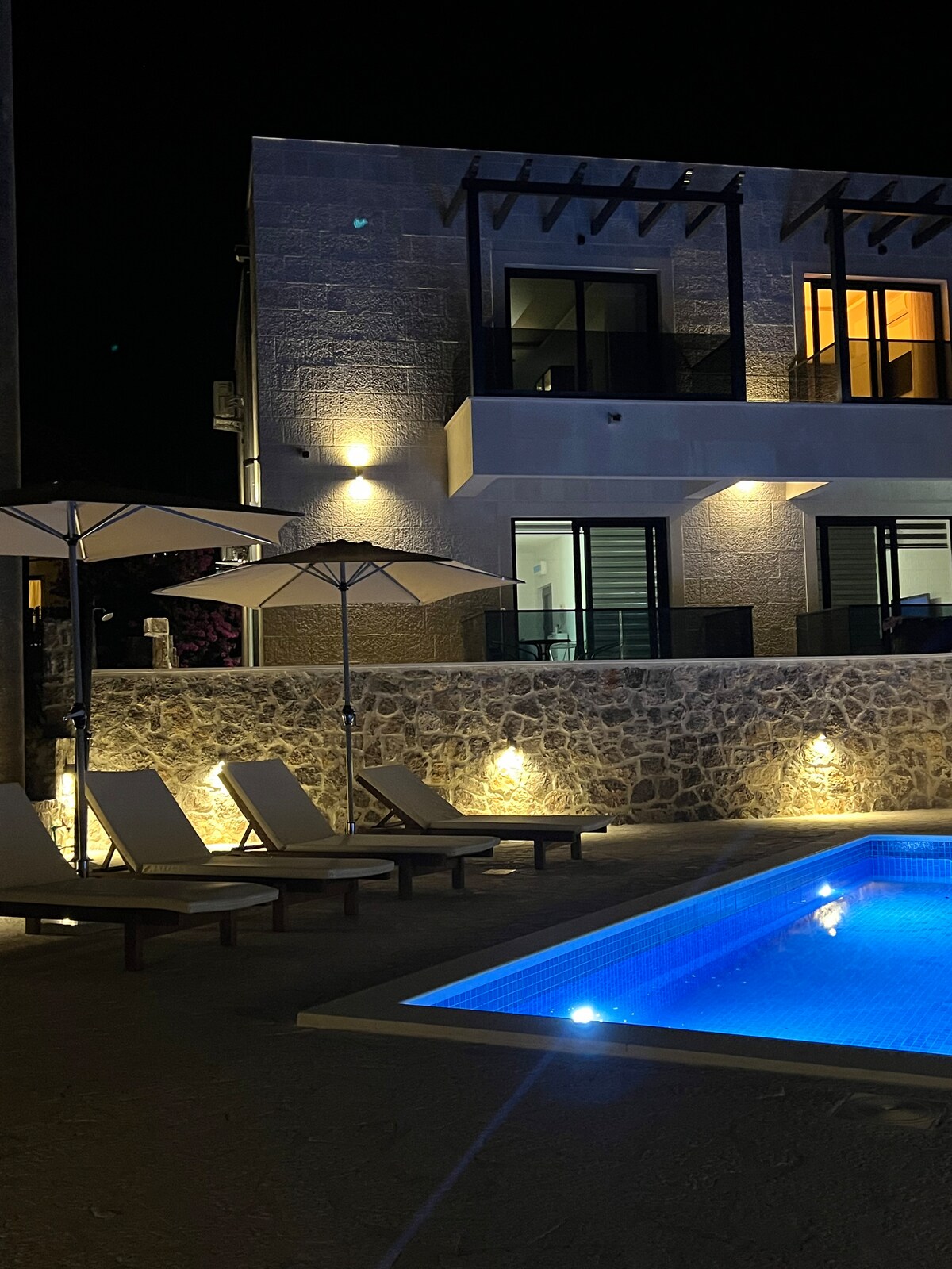 Green Oasis is traditional mediterranean stone house, located just a few kilometers outside of the historical town of Dubrovnik. Surrounded by spacious garden, terraces and a heated swimming pool, house is located just two steps away from Adriatic sea, where sea is literally splashing front door of terrace.