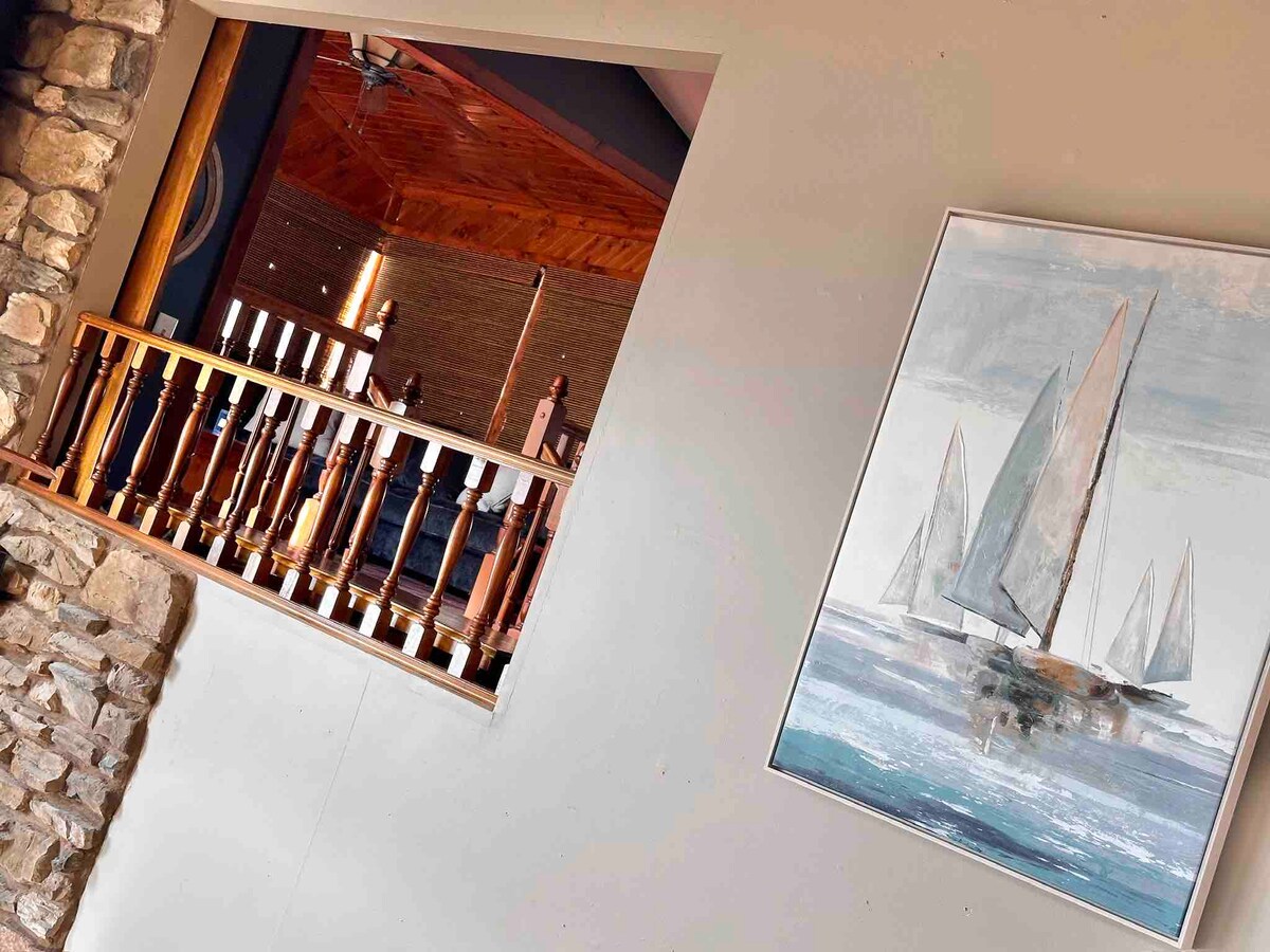 Step in and embrace the interior design style of this home. This residence showcases dark wood flooring and architectural wood beams, a blend of rustic and chic aesthetics. It has an open floor plan with two large living areas centered around the kitchen with breakfast bar.
