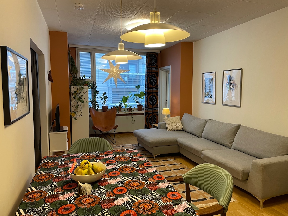 ❆ 34 m² studio, warm & cozy, recently refurbished ❆ Modern, tranquil building ❆ Fully stocked kitchen: - dishwasher, fridge&freezer, pans, pots, table wear ❆ Bathroom with shower, toilet, sink, washing machine ❆ Private sauna ❆ Complimentary soap, shampoo, and bench pads for sauna ❆ Private balcony ❆ King-size bed ❆ Sofa bed ❆ Sheets, towels ❆Office desk ❆ Wi-fi ❆ Very central location ❆ Bus stop to Santa's Village a 4-minute walk away ❆ Non-smoking/-vaping ❆ Outdoor sled for kids!