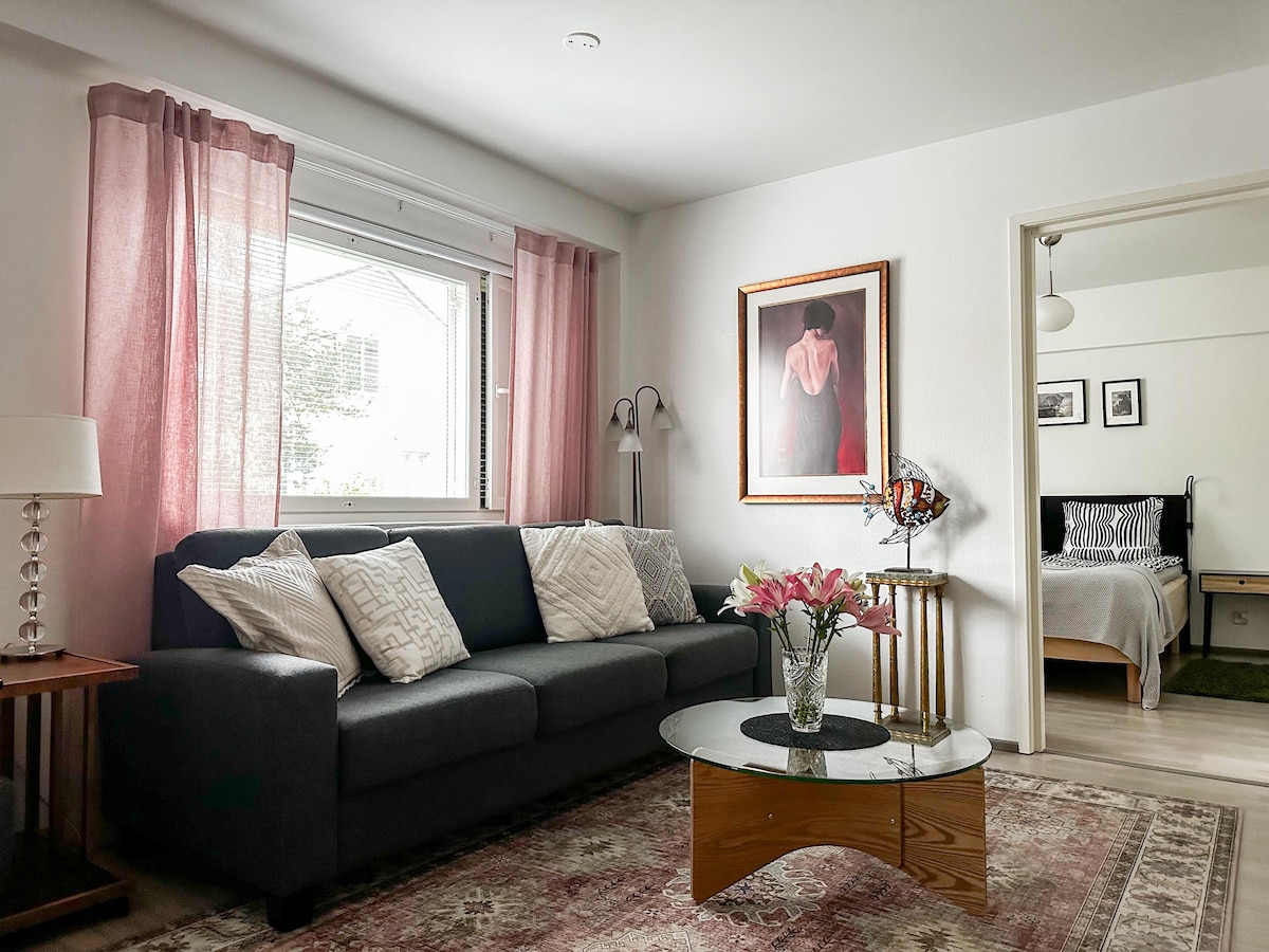 Joen rannassa keskustassa rauhallisella paikalla sijaitseva 55m2 suuri valoisa kaksio. Olohuone, makuuhuone, keittiö, kylpyhuone, suuri lasitettu parveke. Nopea yhteydenpito sähköpostitse ja puhelimitse. / By the river in the city center, in a quiet area, bright large apartment with one bedroon, living room, kitchen, bathroom and glazed balcony. Contact via email and phone.