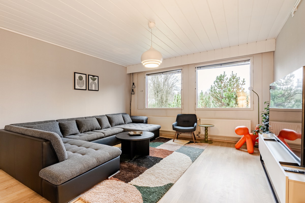 Large cosy house - next to Santa Claus at the Arctic Circle. Cosy Family house 132 m2 with 9 beds, large sauna, nice backyard and big terrace. Peaceful and safe neighborhood. It's only 5 minutes walk to the Santa Claus Village. Sometimes it is possible to see Northern Lights / Aurora Borealis right from our backyard. Welcome to Rovaniemi - the hometown of Santa Claus.