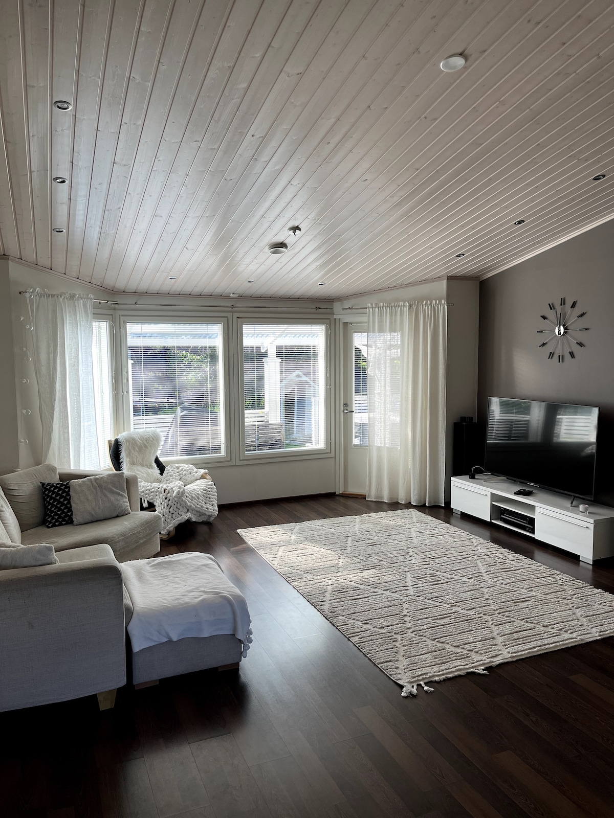 Villa Pulla is located near the Kemijoki river and the Ounasvaara hill, and it takes a 10-minute walk across the bridge to reach the city. This spacious and stylish house serves as a haven of tranquility. Enjoy the sense of unhurriedness, the proximity of the forest and the river, the open space of the house, and the sauna or bath. Villa Pulla exemplifies the best of life in Rovaniemi. Everything is within reach, yet you can enjoy your privacy in a beautiful environment.