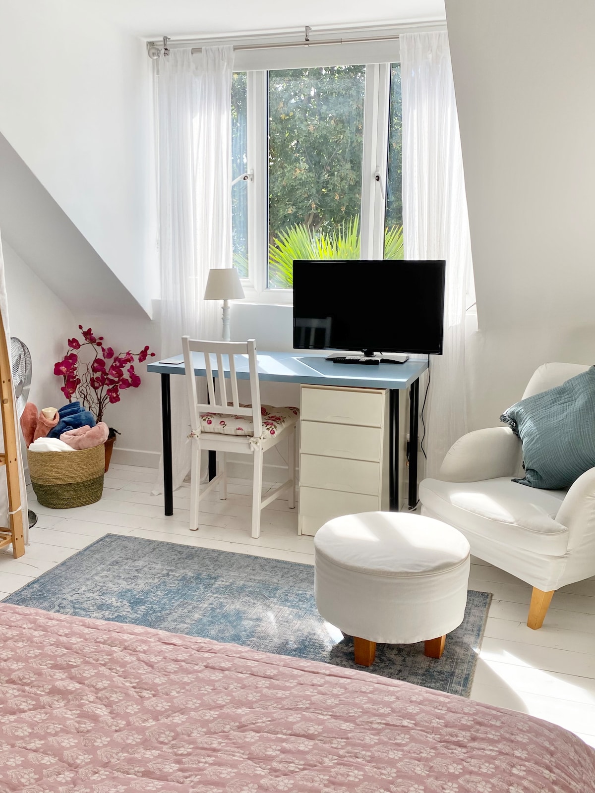 Our lovely Victorian terraced house has an eat-in kitchen, family bathroom, downstairs toilet & two living rooms (one is reserved for guests' exclusive use after 7pm), plus garden with patio. The room is a large, garden-facing double with a very comfortable mattress. Guests share the communal spaces with myself, my husband and our three young sons (aged 18 months, 4 and 7). We try our best to keep the noise down but please be aware that this is a busy family home!