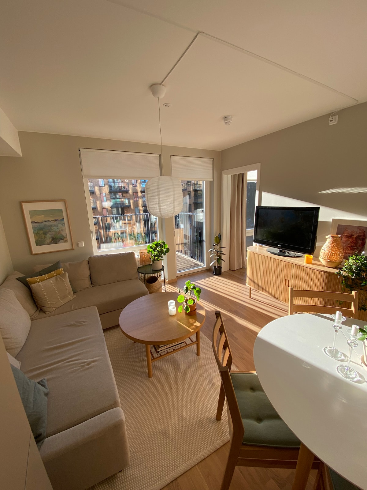 Keep it simple at this peaceful and centrally-located apartment in the heart of Lørenskog with rooftop terraces and heated floors. Most of the necessary equipment is provided: Washing machine, dishwasher, air-humidifier, kitchen appliances & utensils, fresh towels, soap and shampoo. In addition you'll have access to a 65" OledTv with Amazon Prime, Disney+, AppleTV, HBO and Netflix. Triaden shopping mall - 5 min Bus stop to Oslo or Lillestrøm - 2 min Snø Indoor skicenter is also nearby.