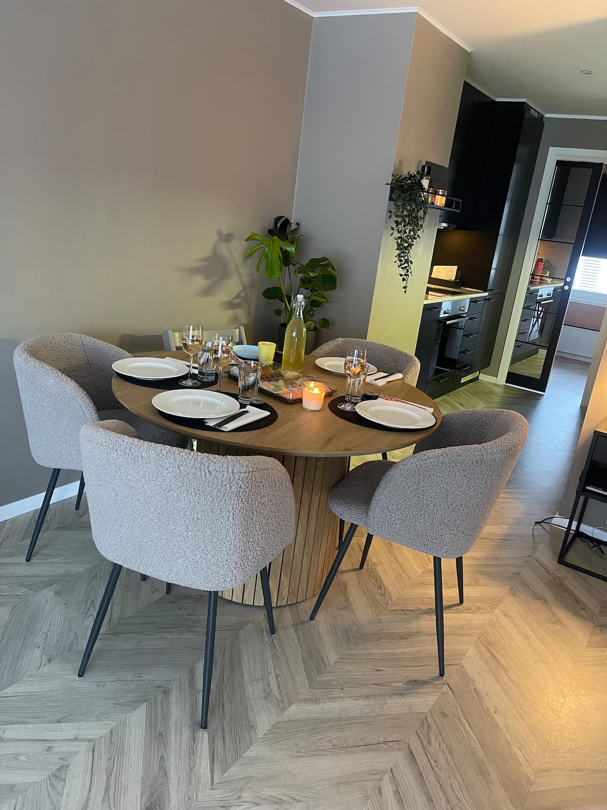 Lys og moderne leilighet i et rolig og attraktivt område, med gå distanse til Triaden Senter. Her får du en komfortabel og praktisk base med alt du trenger for et avslappende opphold. Stue & kjøkken med stor og behagelig sofa, TV, åpen løsning med spisebord for 4 og fult utstyrt kjøkken med oppvaskmaskin Soverom med komfortabel dobbeltseng og mørkleggingsgardiner Bad med romslig dusj & vaskemaskin Privat terrasse/balkong Fasiliteter:WiFi, heis, moderne interiør og nær offentlig transport