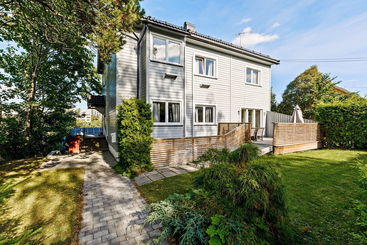 Her bor du fredelig, romslig og idyllisk i et villaområde nær offentlig kommunikasjon. Ca 100 m2 i 1. etasje. 2 min til busstopp eller 15 min til toget (5 min med buss) og du er i Oslo sentrum på 20 min. Med bil er det 16 km dit. Leiligheten passer for et par med 1-2 barn. Stor dobbeltseng i romslig soverom, og 2 enkeltsenger i stue. Kort vei til matbutikk, og kjøpesenter med alle tilbud i nærheten. Nordens største, innendørs skianlegg i nærheten.