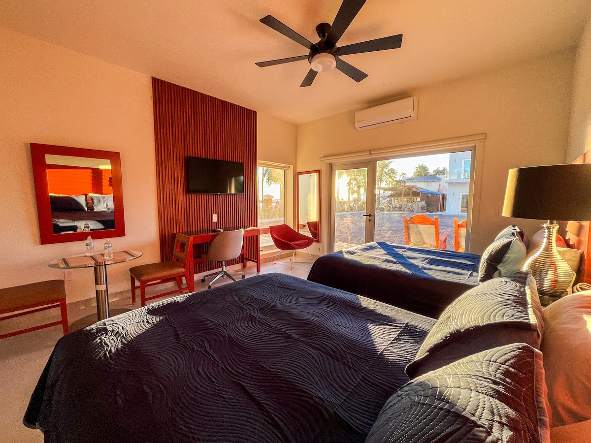 Casita de Catalina is a luxurious one-bedroom casita directly on the beach of the Sea of Cortez. Perfect for a couple looking for a romantic get-a-way or a solo traveler desiring special accommodations on the water. King sized bed, fully equipped kitchen. Granite countertops. Hand painted tiles. Flat screen TV, DVD, satellite cable, and wireless Internet. 50’ lap pool. Outdoor entertainment center. Stand-up paddle boards, kayaks and bicycles. A full-time caretaker on the grounds.