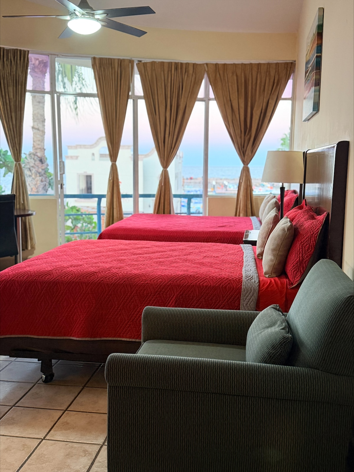 Hospedate en uno de los mejores lugares ubicados frente al mar, con una impresionante vista y acceso directo a la marina. Relájate en una habitación cómoda de dos camas Queen Size, saboreando un exquisito café, con un servibar para guardar tus refrescantes bebidas, caja de seguridad para tus cosas personales, wifi. Contamos con servicio de café en el lobby . Disfruta de los bellos amaneceres.
