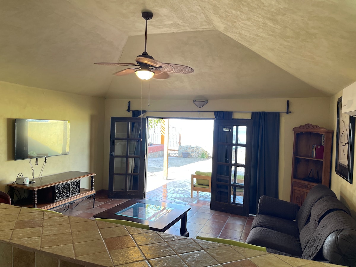 Nuestra casa de dos habitaciones se encuentra a una cuadra de la playa La Negrita y a cinco cuadras del centro histórico de Loreto, podrás ir caminando a la marina y a todos los principales atractivos turísticos. Tendrás todas las comodidades necesarias para una estancia agradable, tu vehículo estará seguro en la cochera y la velocidad del internet es muy buena. Contamos con dos terrazas, asador para tus tardes de convivencia, cocina completamente equipada y una sala de estar muy cómoda.