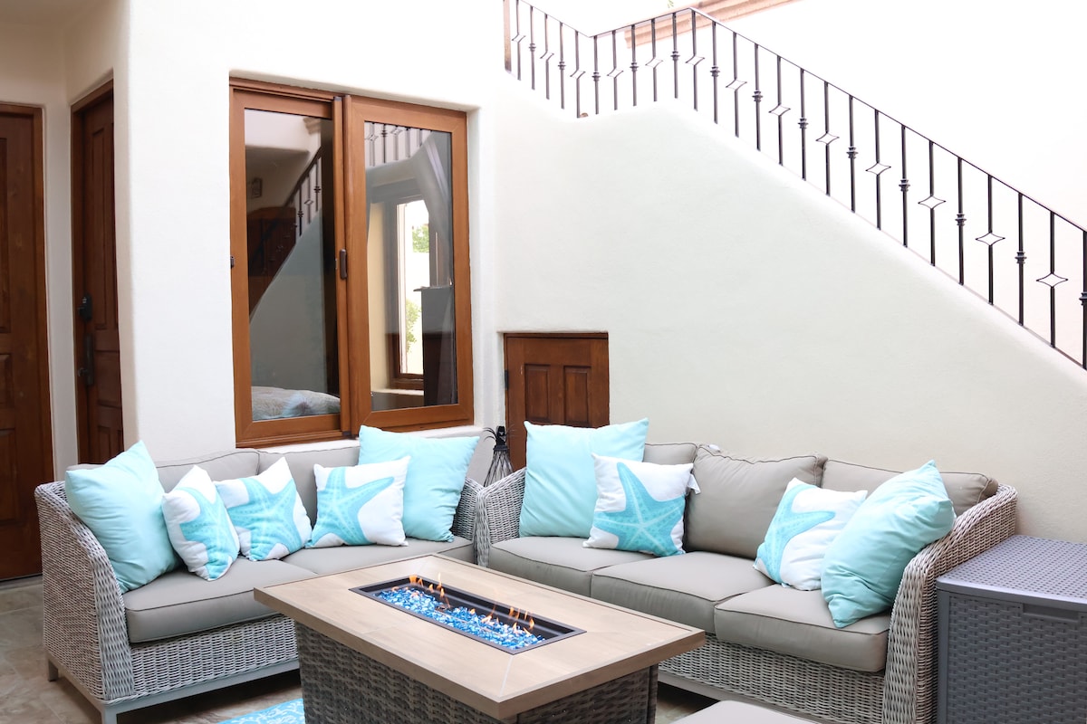 Refresh and relax in this Mexican style villa with old world charm. High beam ceilings and antique details flank indoor/outdoor living in the heart of coveted Founders, Loreto Bay. Start your day in our large garden courtyard with firepit and fountain and finish with stunning 360 views as you watch the sunset from the tower. Perfectly located steps from Golf , Restaurants, Coffee shop, Beach, Pools, and much more. So many extras here to find your moment of tranquility and the flavors of Baja