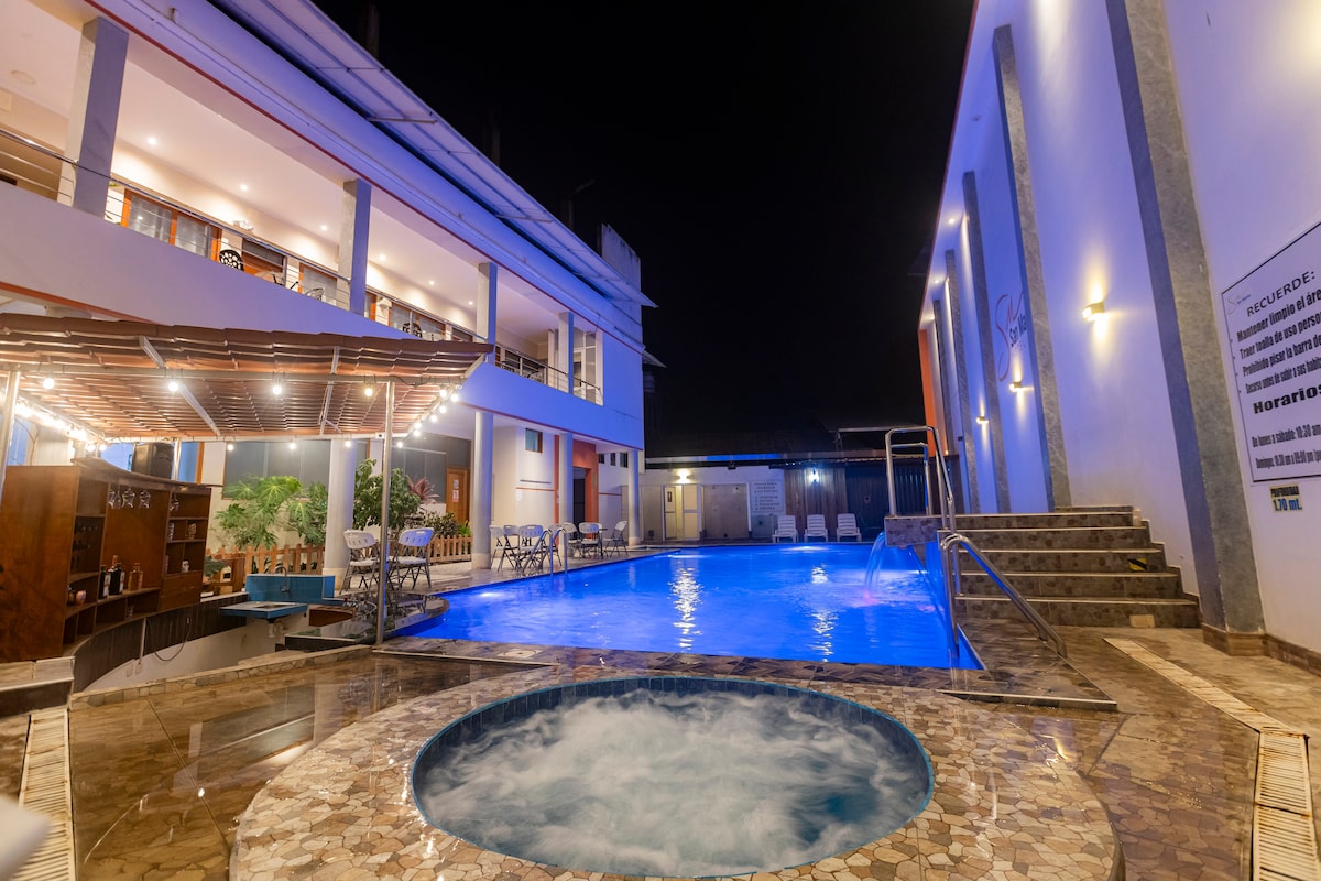 Residencial Marina House se encuentra en Tarapoto; dentro de sus servicios ofrece dos piscinas al aire libre, WiFi gratuita, servicio de traslado gratuito, desayuno todos los días y recepción las 24 horas. El apartamento está full amoblado equipada con aire acondicionado en la habitación principal, TV Smart , 2 baños con agua caliente. El aeropuerto está a 5 km.